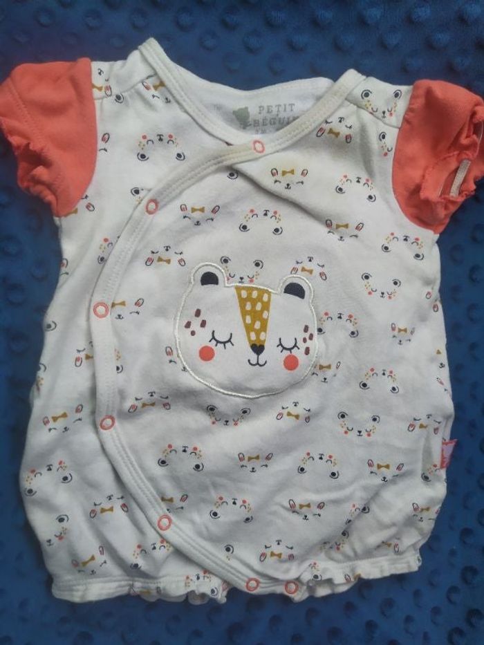 Barboteuse blanche et rose motifs animaux Taille 3 mois Marque petit béguin (jaunis sur l'avant vers le col, voir photo) En bon état