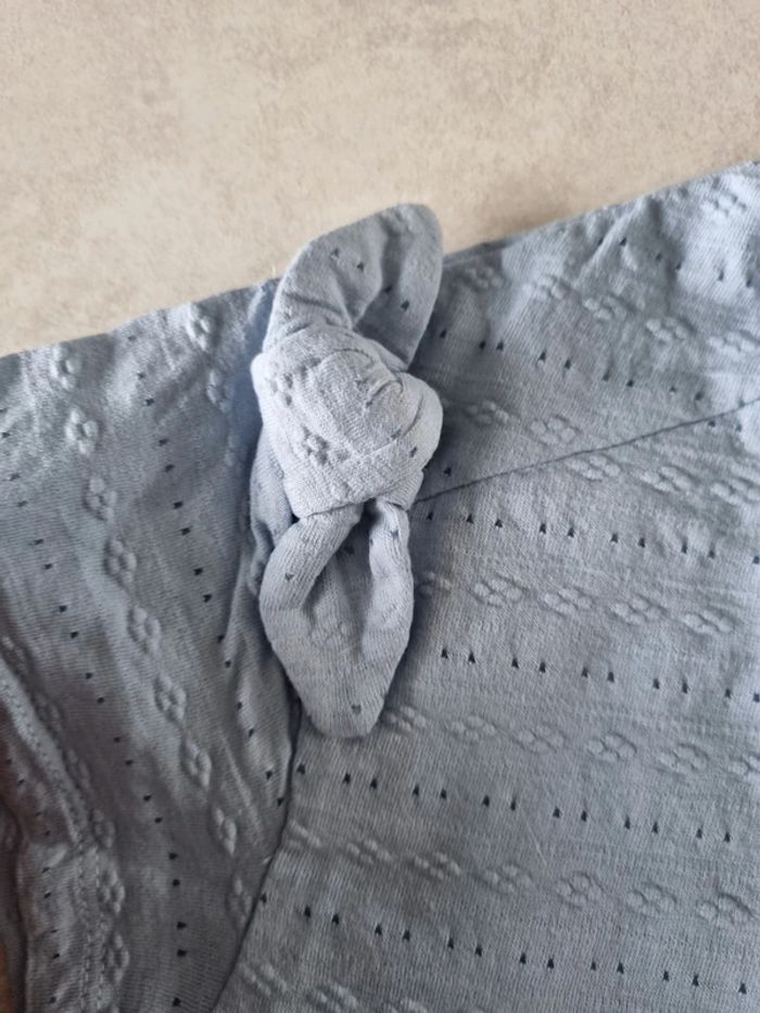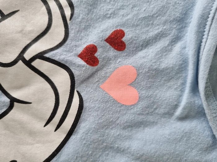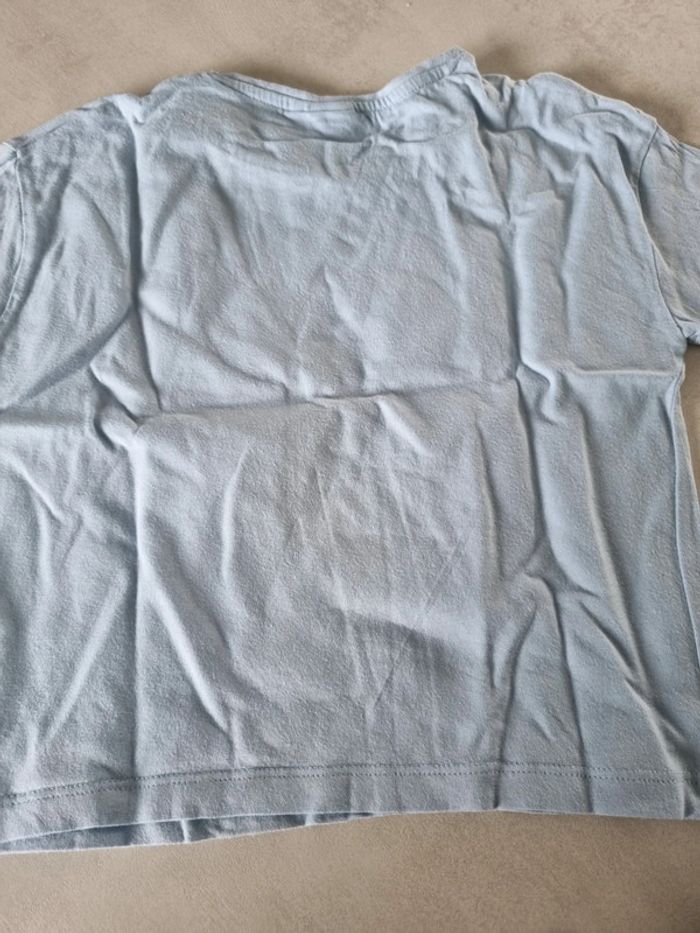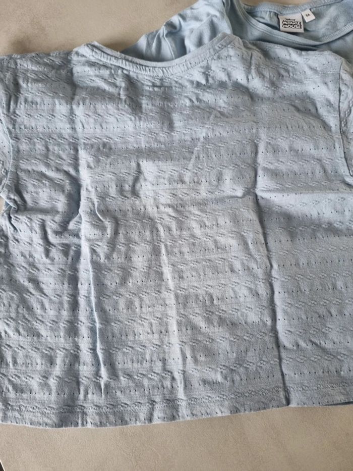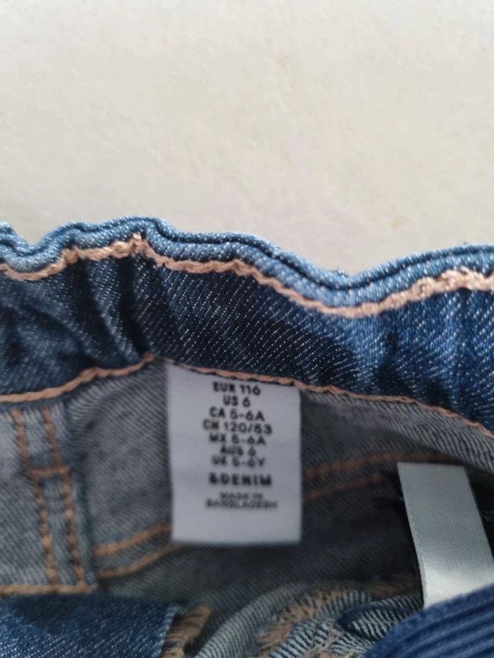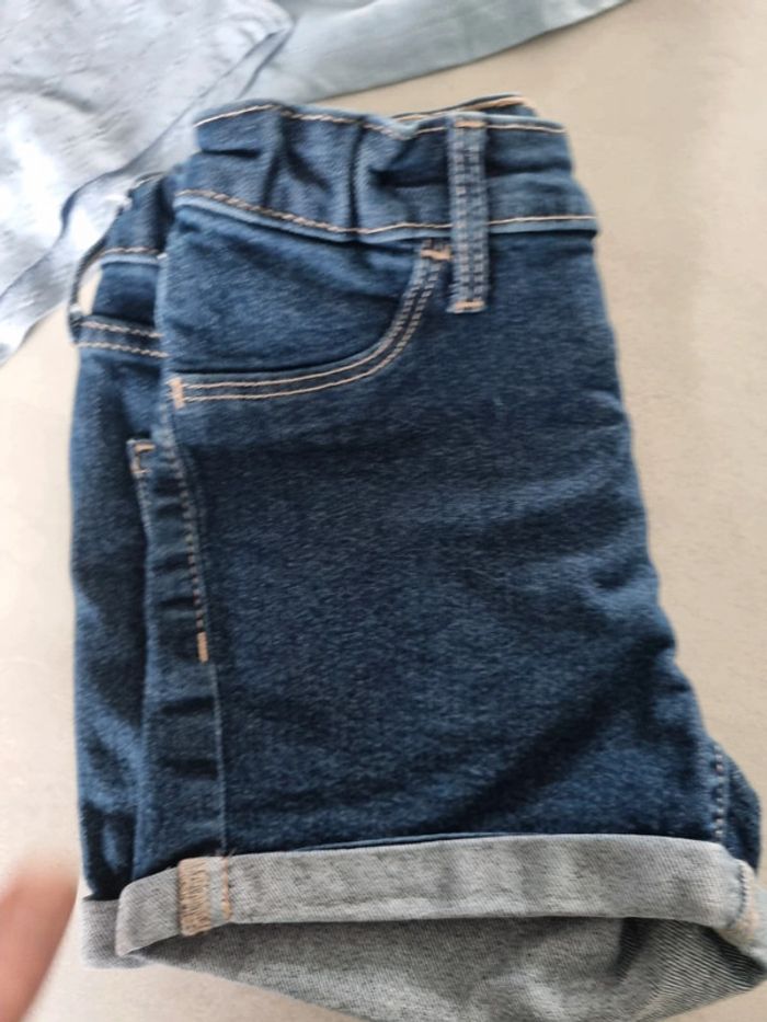 Look été fille. Short en jeans h&M taille 116cm Tee shirt ajouré bleu ciel kiabi taille 6 ans Tee shirt bleu ciel minnie disney taille 6 ans