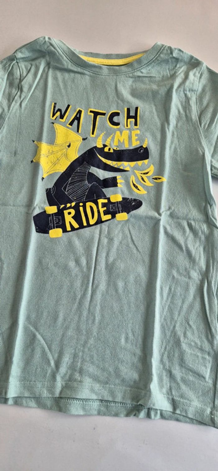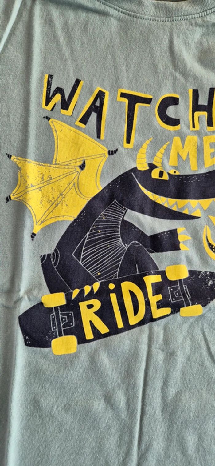 Tee shirt manches courtes kiabi Vert clair kaki 8 ans Motif dragon
