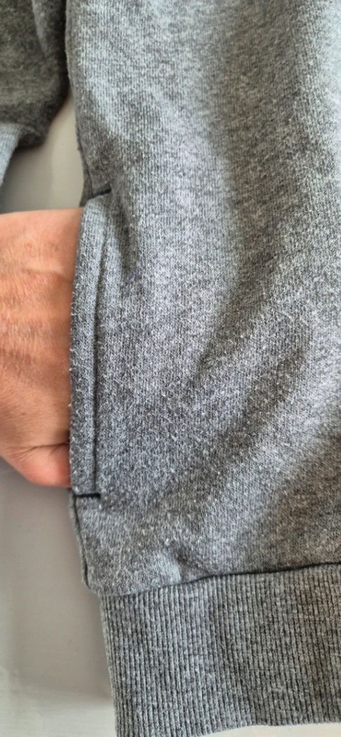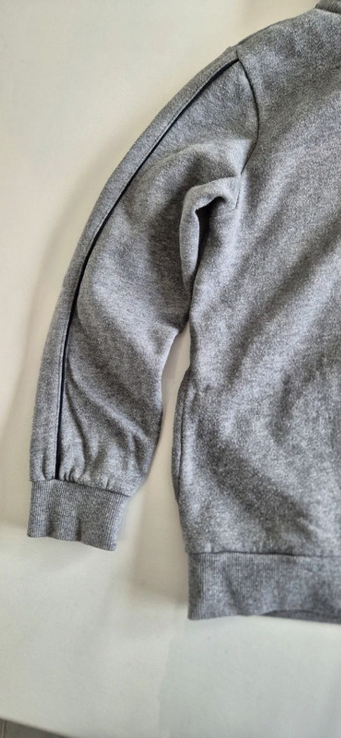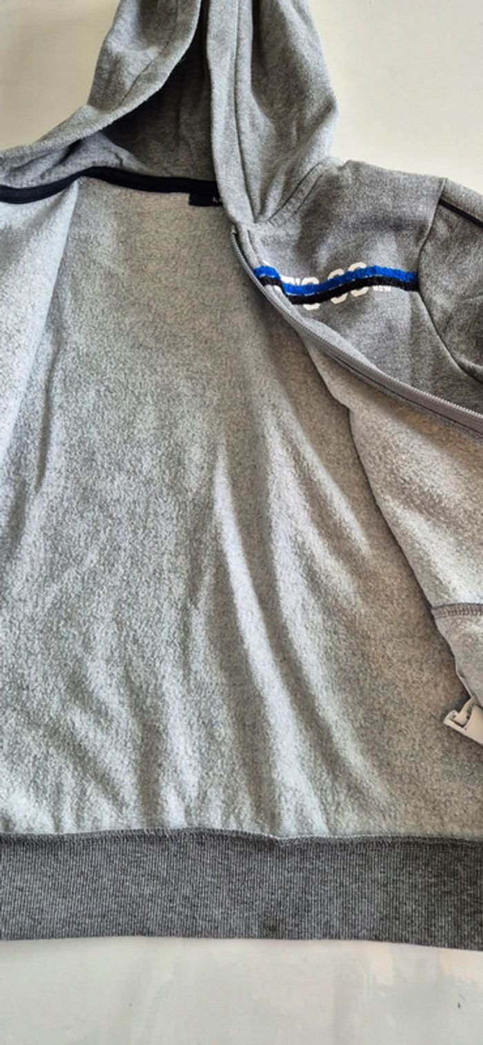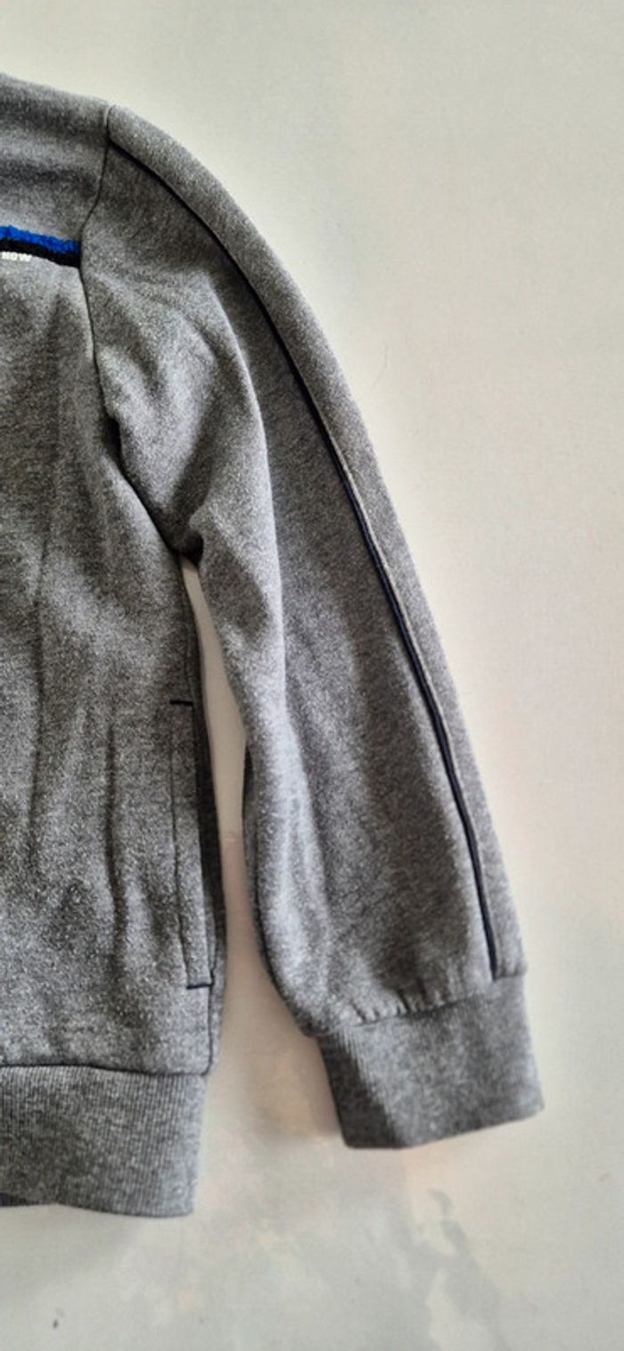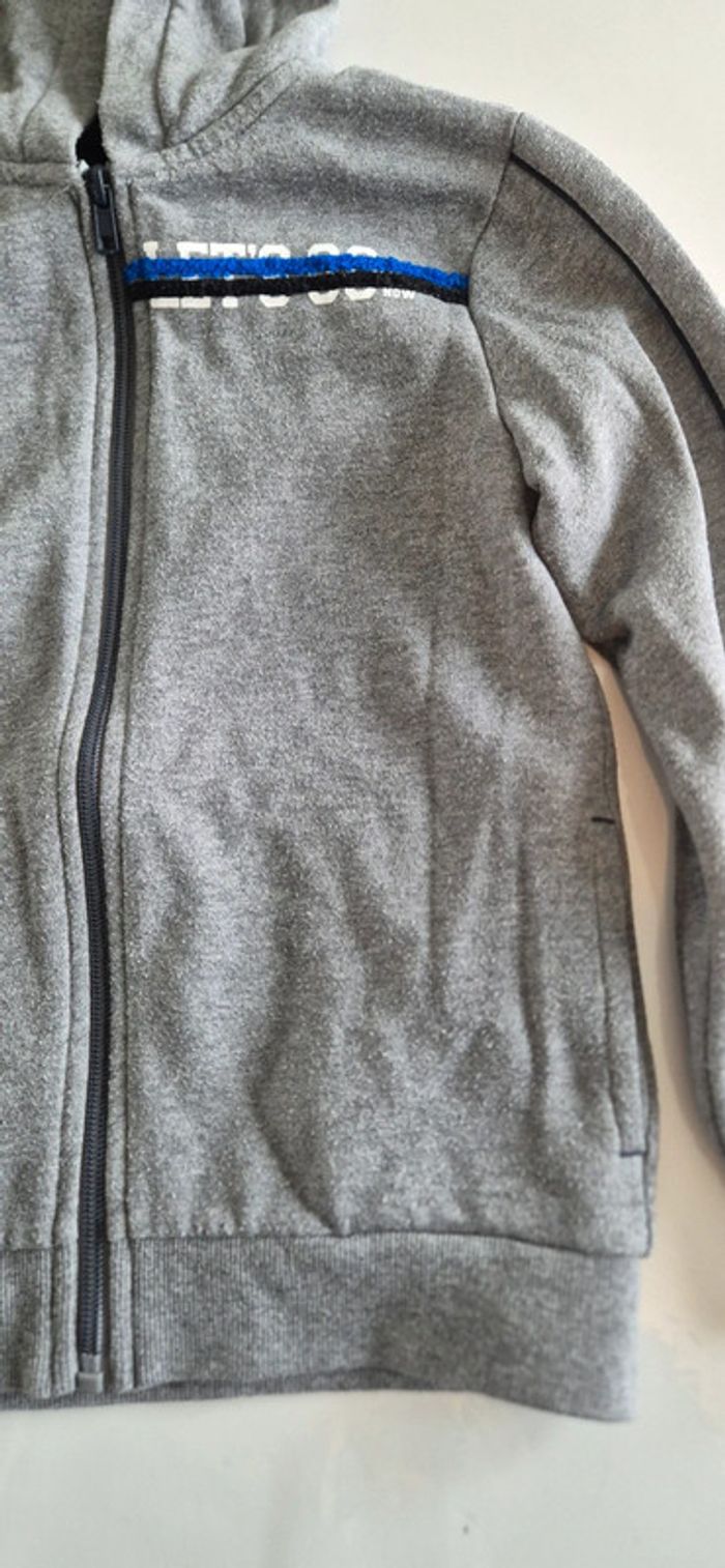 Veste à capuche style sweat. Kiabi 8 ans Gris motif bleu noir et blanc.