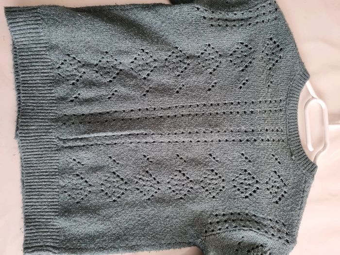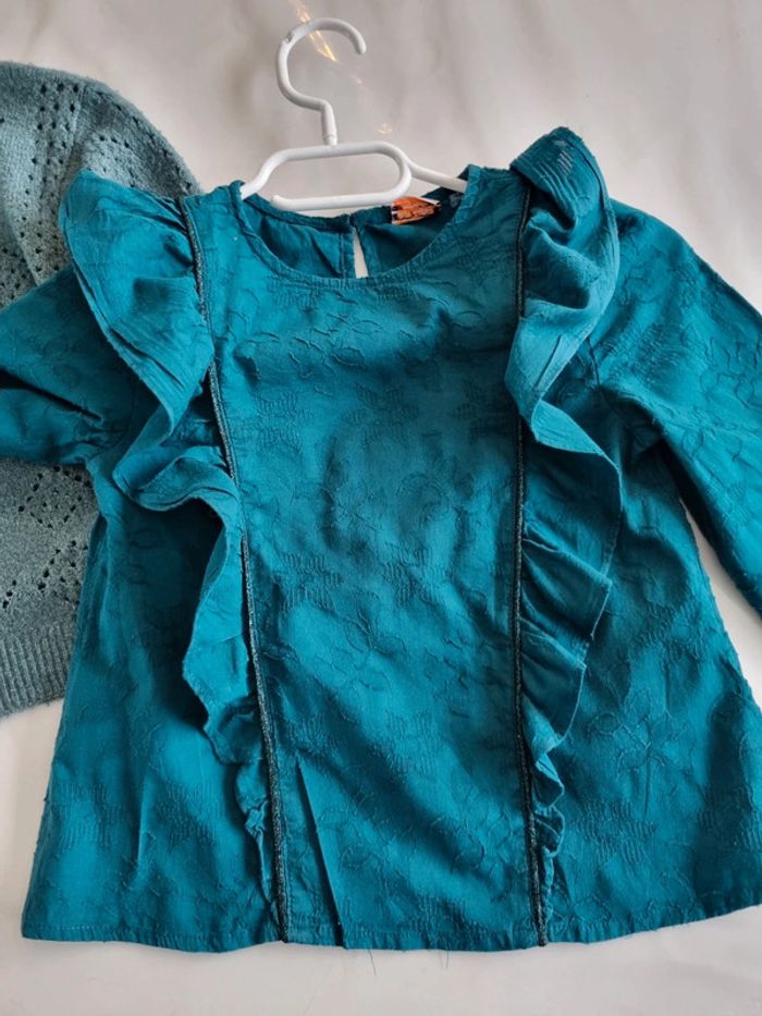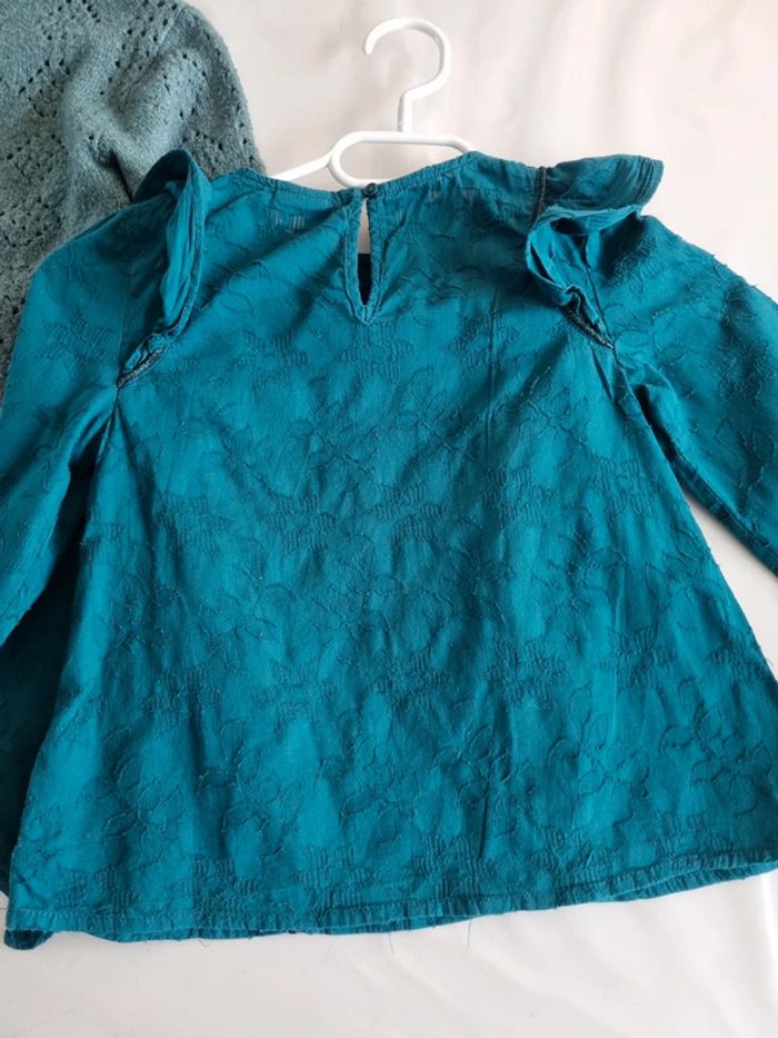 Look fille. Gilet tape à l'oeil 6 ans ( couleur fade en photo) Blouse tape à l'oeil 6 ans. Pantalon h&M taille 116cm soit 5/6ans.
