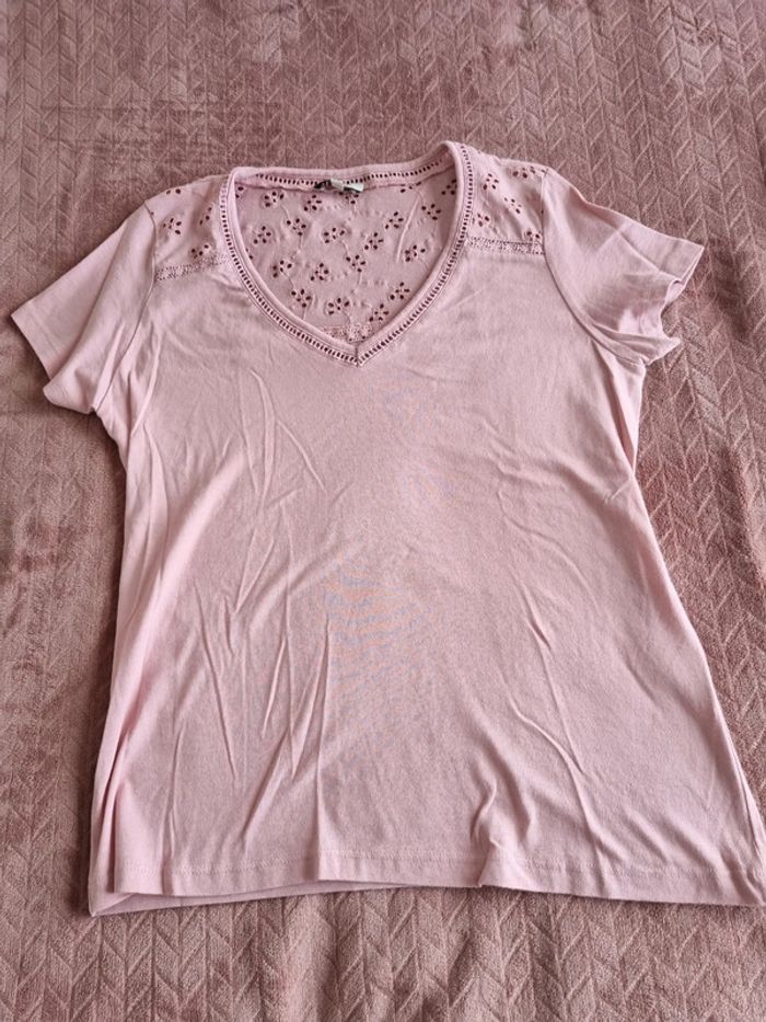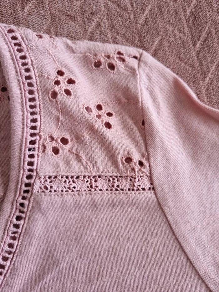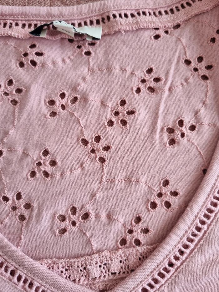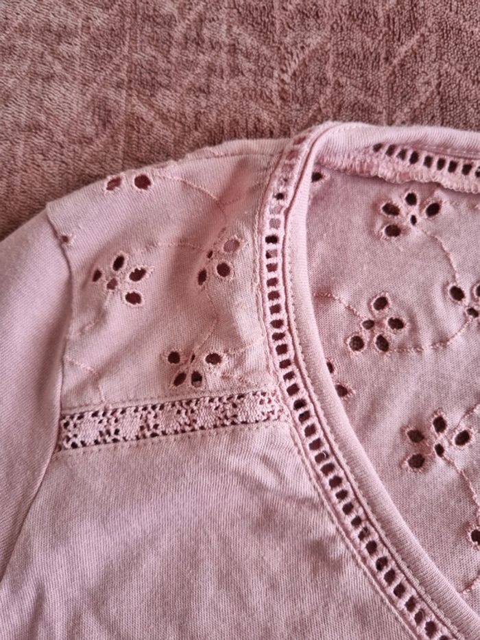 Tee shirt manches courtes. C&A taille S. Vieux rose style dentelle anglaise. Aisselle à Aisselle 47cm environ Longueur 61 cm environ