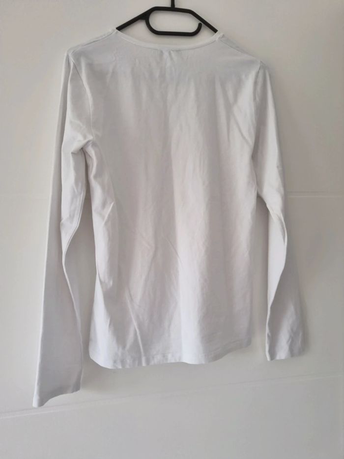 Tee shirt manches longues. Sans marque taille L. Blanc. Aisselle à Aisselle 45 cm environ Longueur 59 cm environ