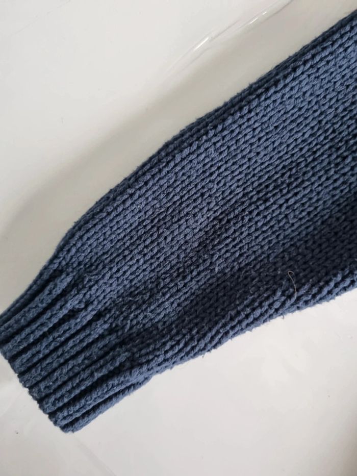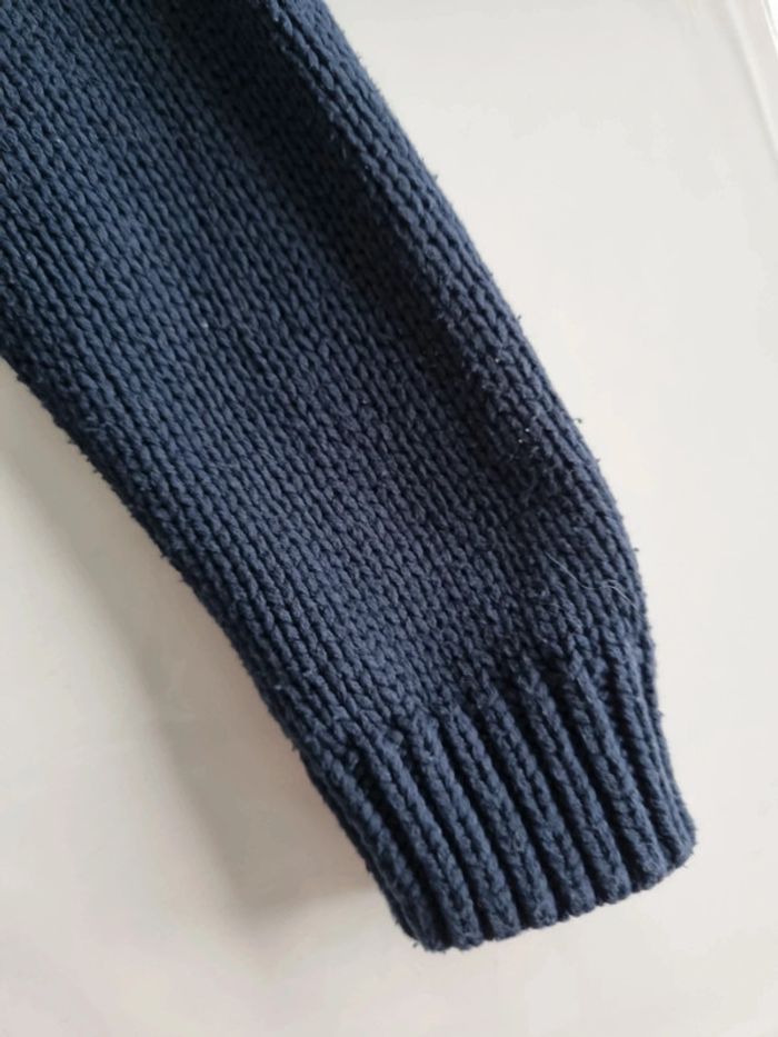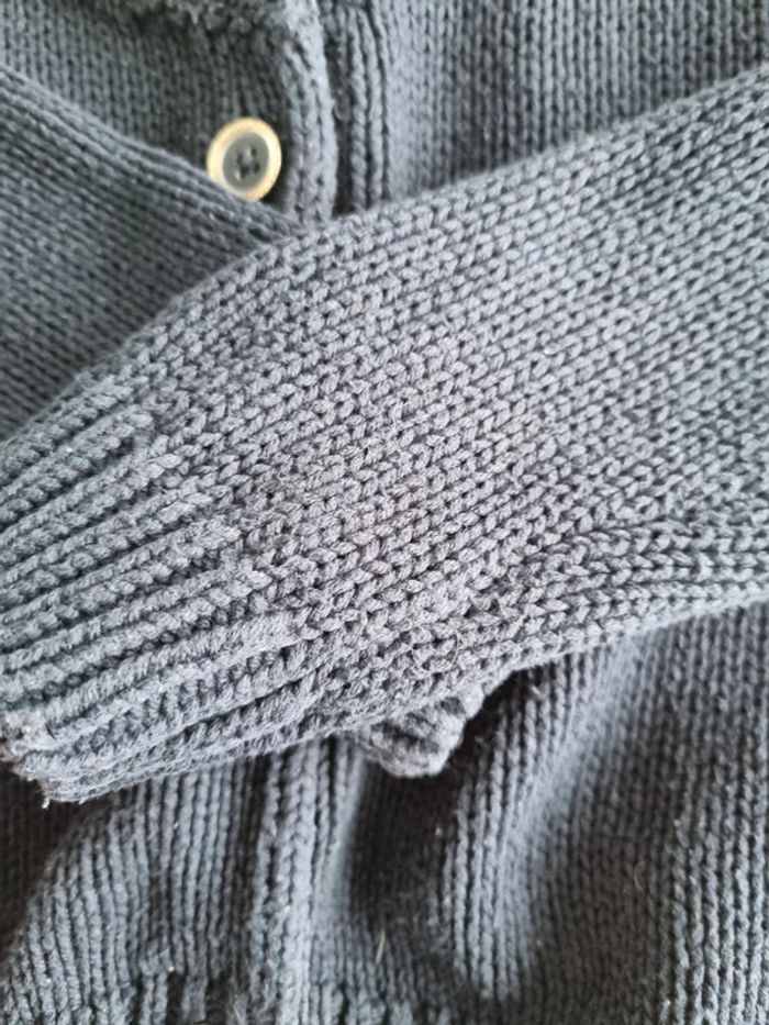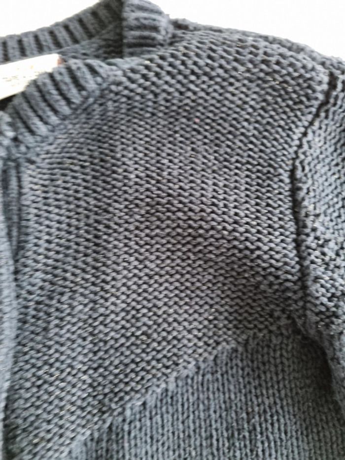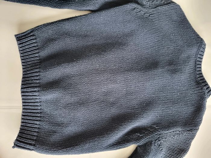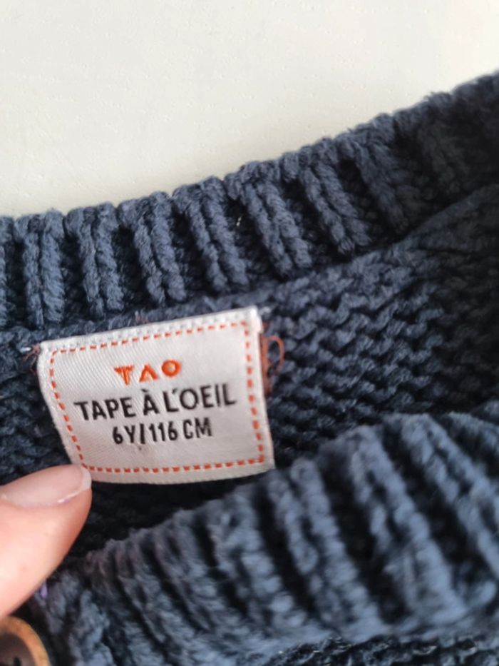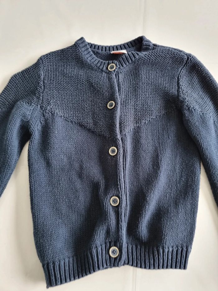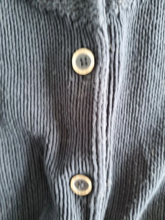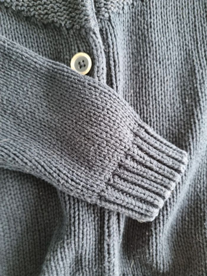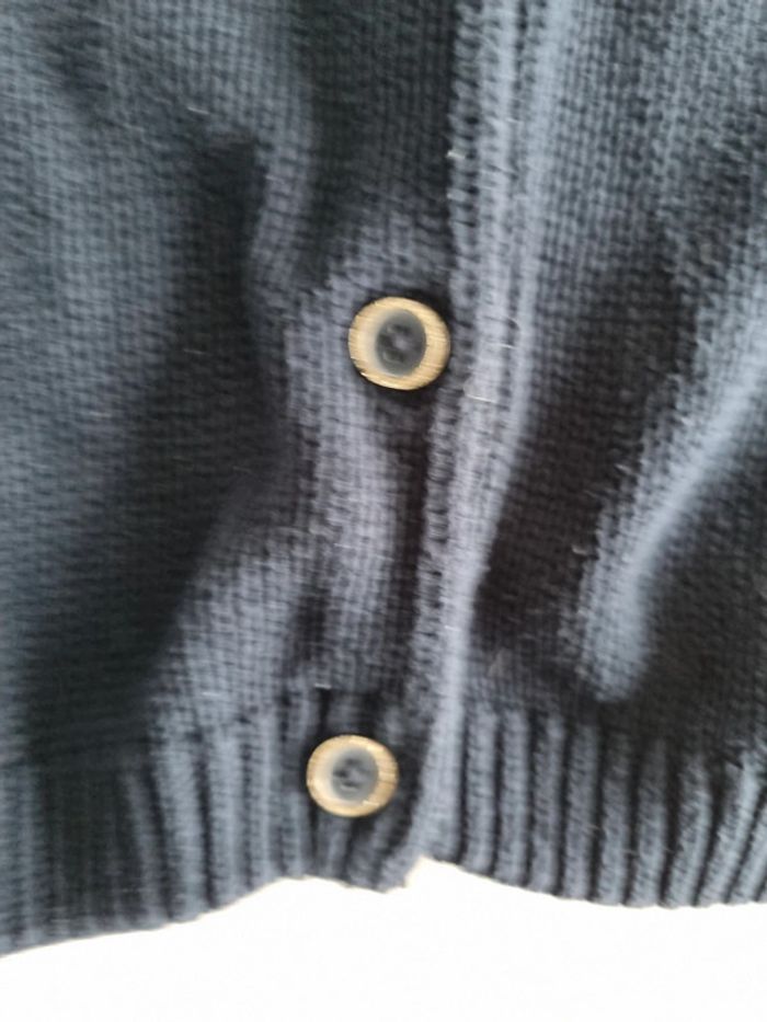 Gilet bleu marine. Tape a l'œil. Taille 6 ans. Grosse mailles. Boutons cercles de doré