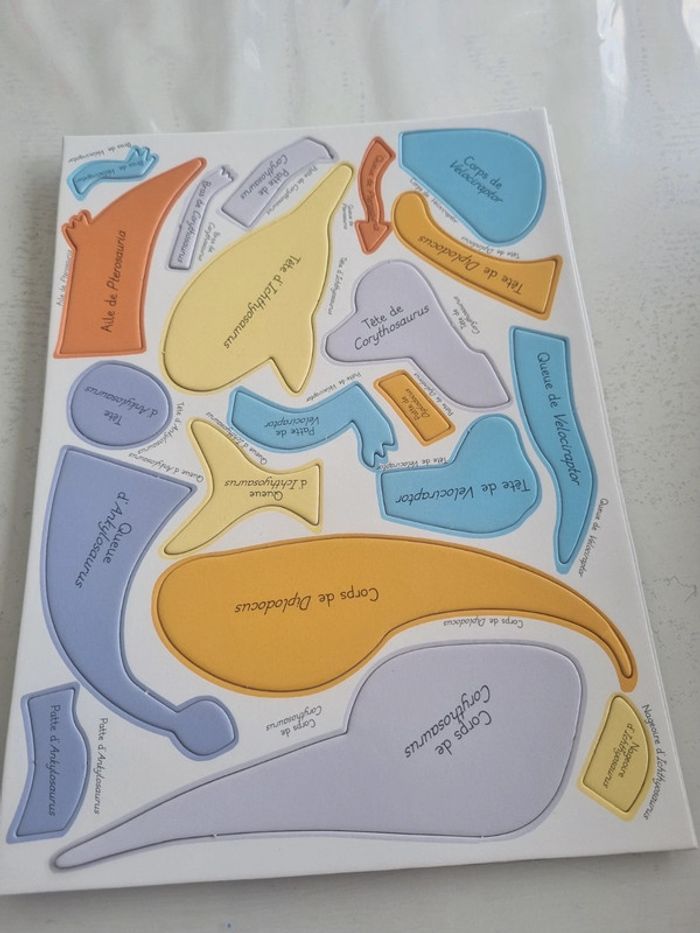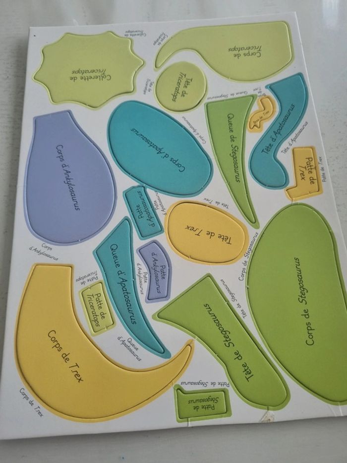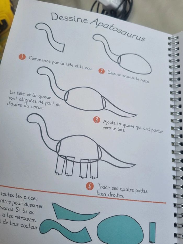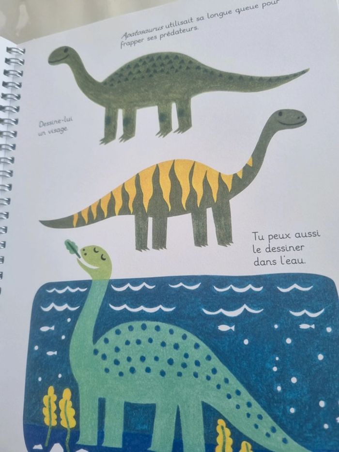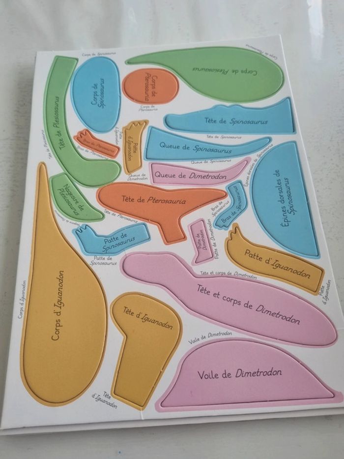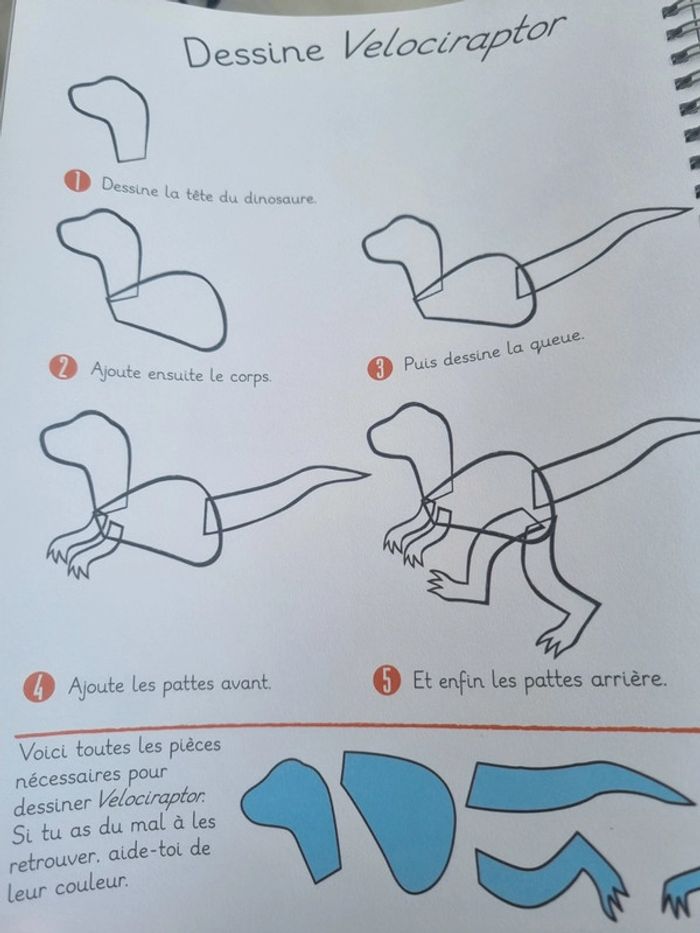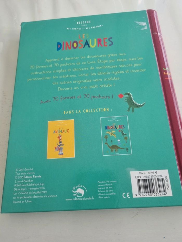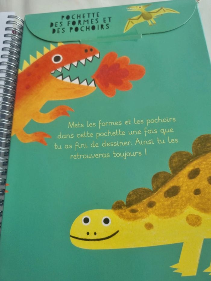 Dessine avec des formes et des pochoirs les dinosaures. Neuf. Les pochoirs ont été déballés mais jamais utilisés. Livre complet.
