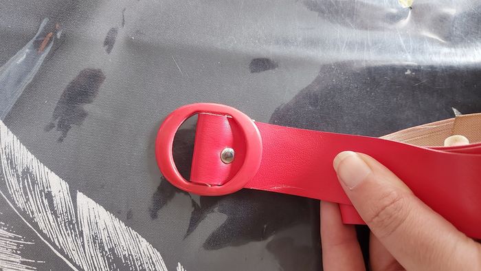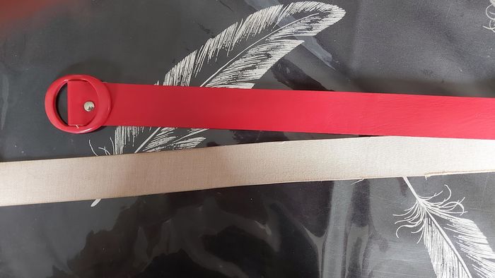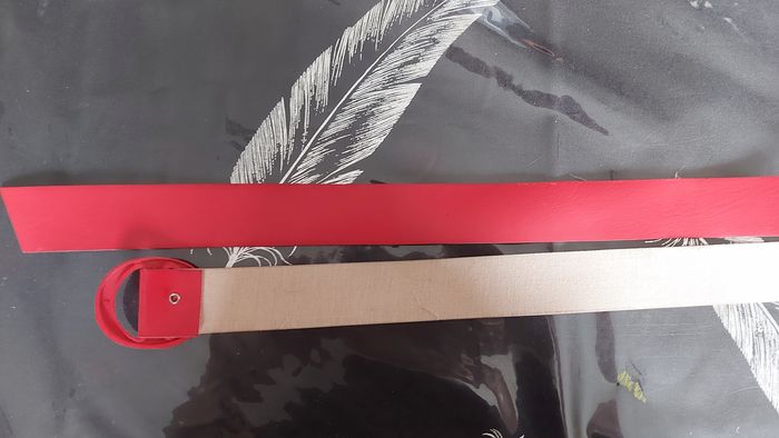 Ceinture synthétique rouge Ajustable max 96 cm Largeur 3 cm Très bon état