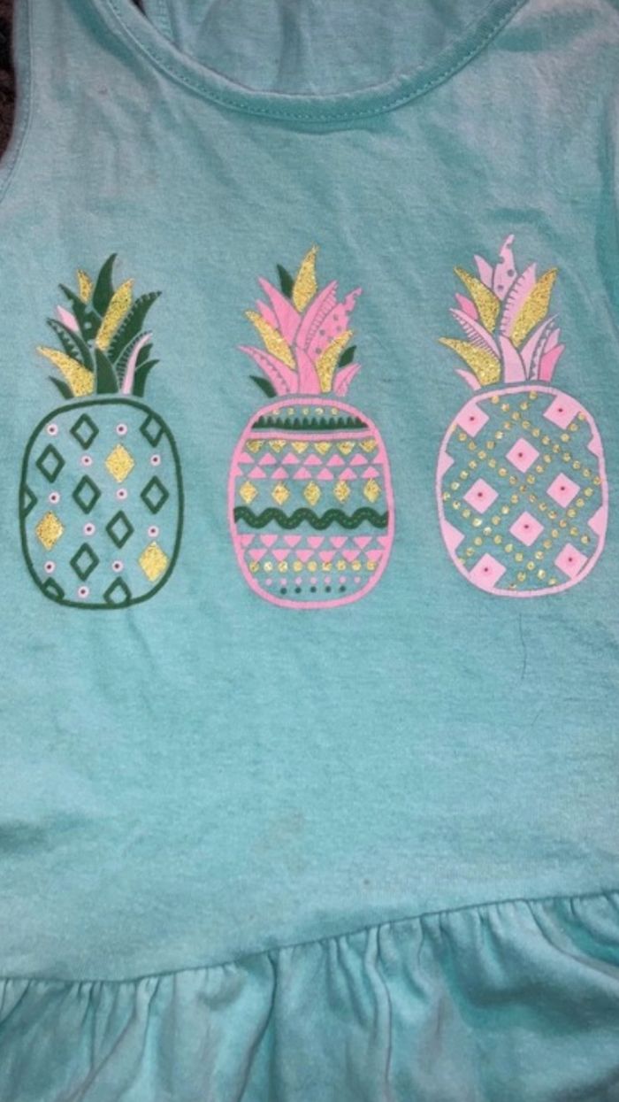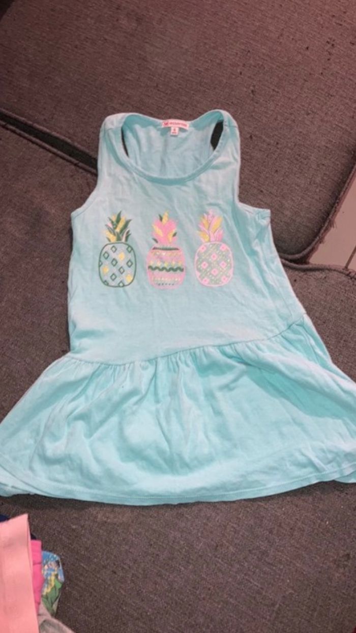 Robe légère bleu ciel à motif Ananas. Taille 4 ans.