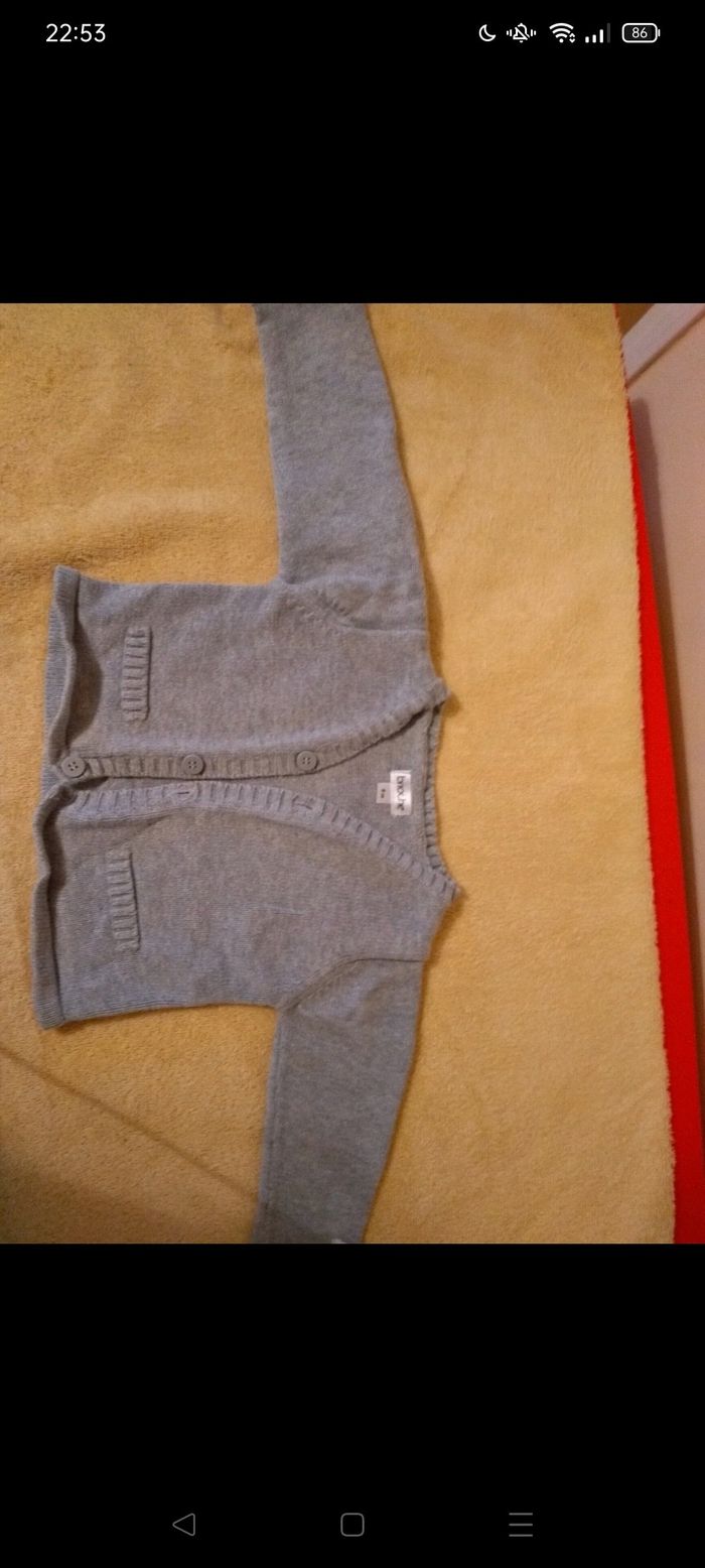 Gilet gris 9 mois. Brioche via la halle.