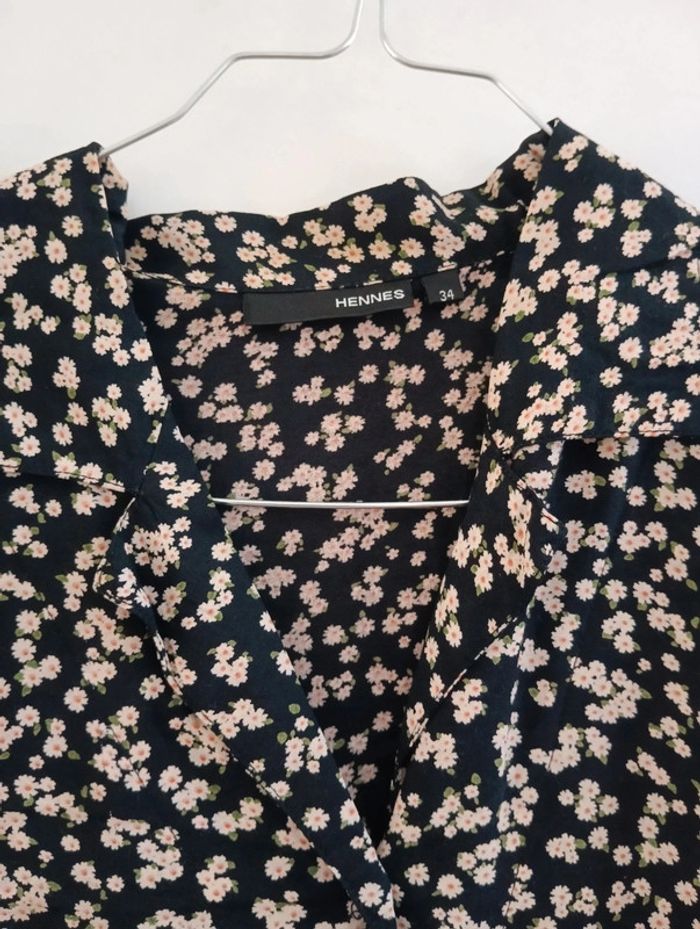 Robe Boutonnée vintage noire petites fleurs - photo numéro 2