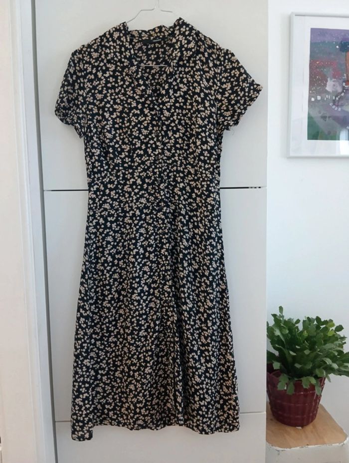 Robe Boutonnée vintage noire petites fleurs - photo numéro 1