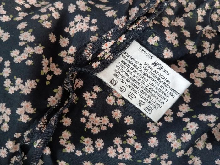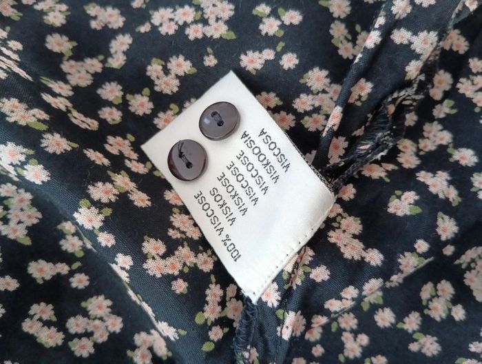 Robe Boutonnée vintage noire petites fleurs Longueur midi, 100% viscose Mesures Épaules 38cm Aisselles 44cm Taille 37cm Longueur 107cm
