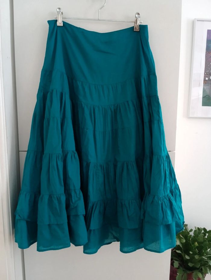 Jupe jupon vintage en coton turquoise - photo numéro 1
