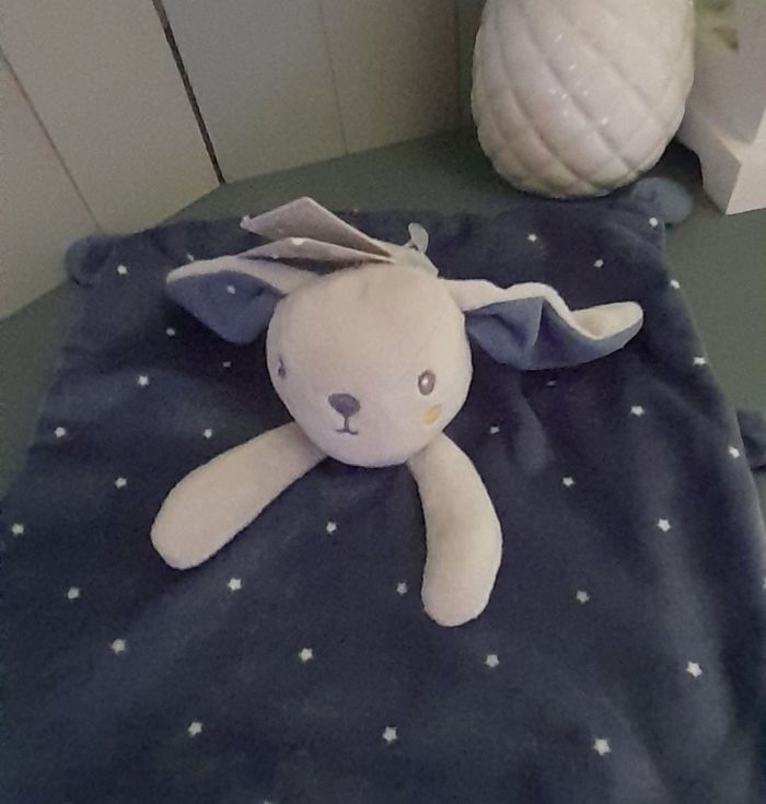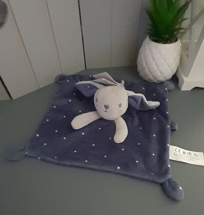 Doudou semi-plat lapin 🐰 Simba toys bleu motifs étoiles, attache-tétine, neuf et étiqueté Non négociable mais n'hésitez pas à faire un lot pour bénéficier de réductions