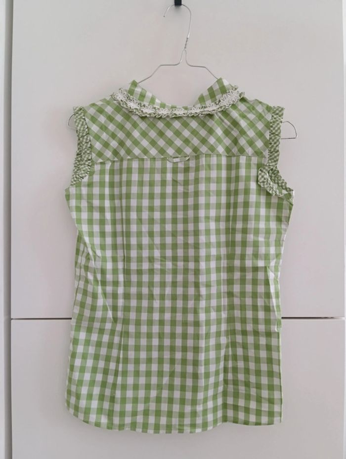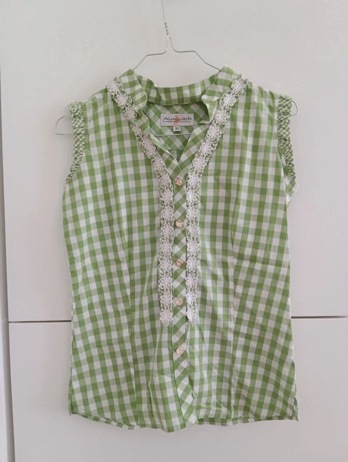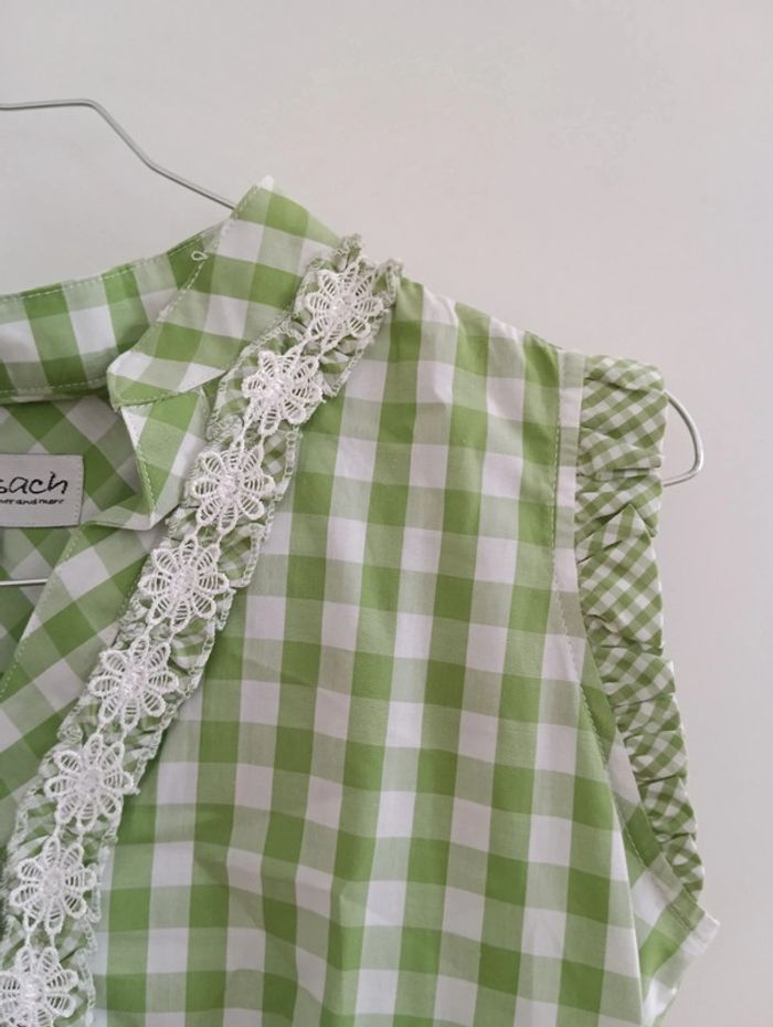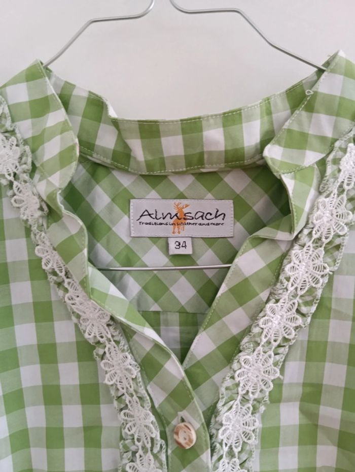 Blouse boutonnée traditionnelle Autrichienne à carreaux verts et blanc Almsach 100% coton Taille 34 Mesures Epaules 33cm Aisselles 43cm Longueur 55cm