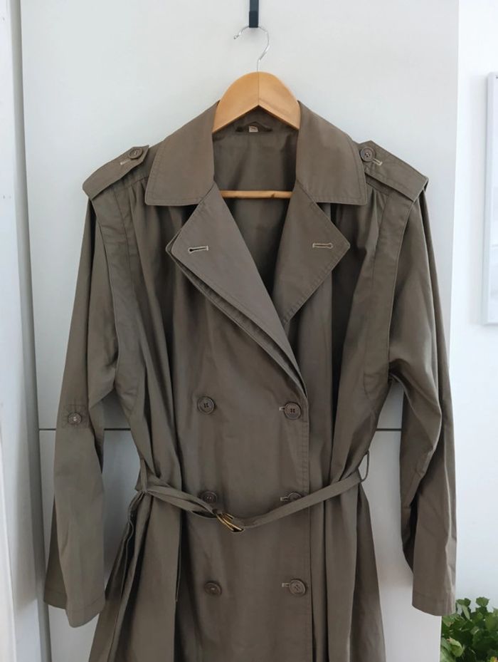 Magnifique Trench vintage ceinturé kaki léger, non doublé Taille 42 estimée à confirmer avec les mesures Epaules 48cm Aisselles 60cm Longueur 110cm