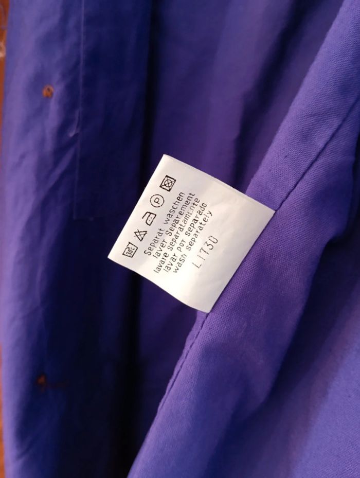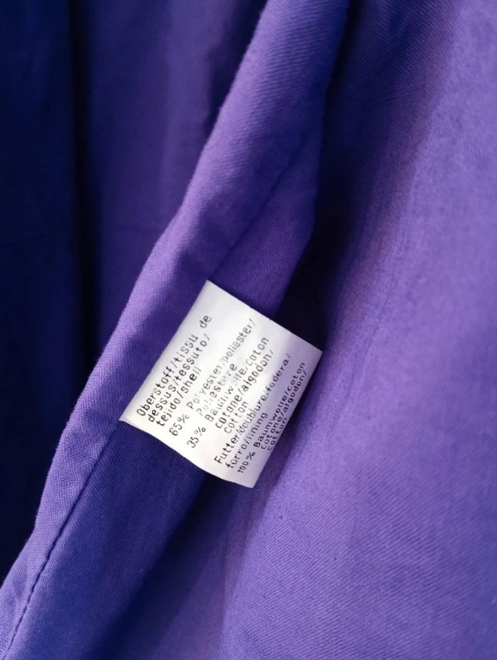 Trench vintage ceinturé court , En coton, de très belle qualité. A épaulettes. Extérieur marron, intérieur violet, jolie harmonie de couleurs. Taille 42/44 estimée à confirmer avec les mesures Epaules 50cm Aisselles 59cm Longueur 53cm