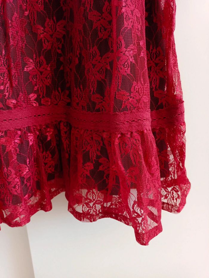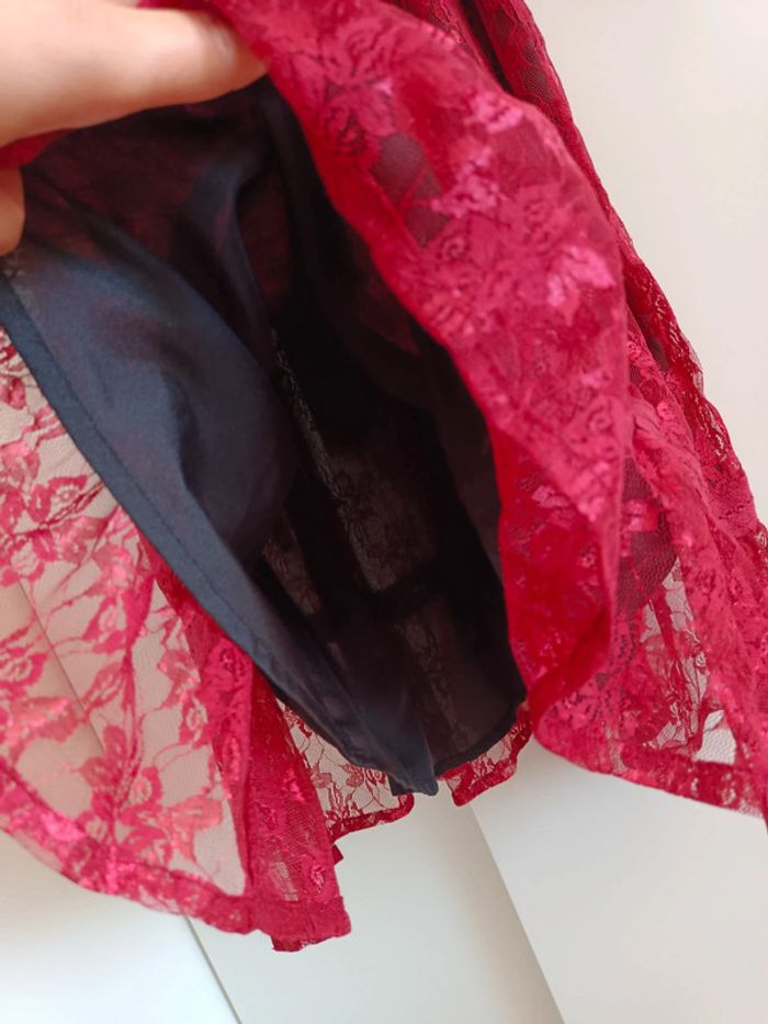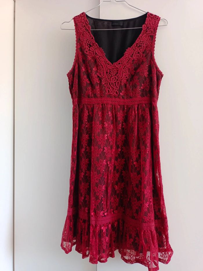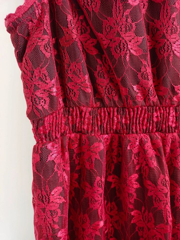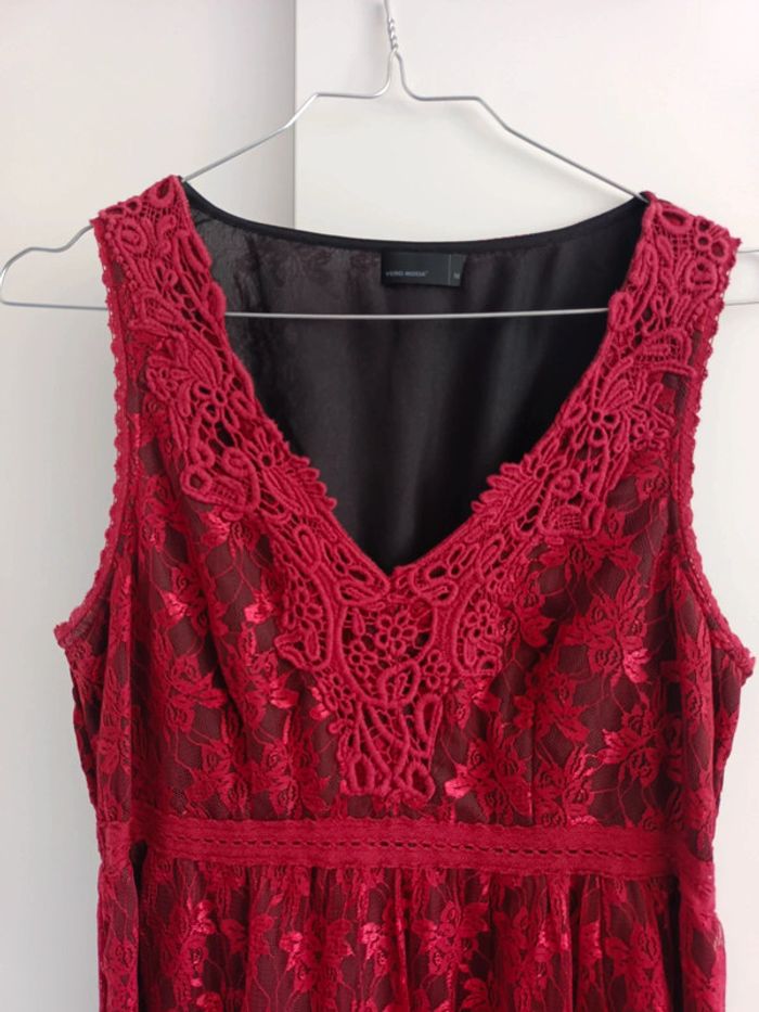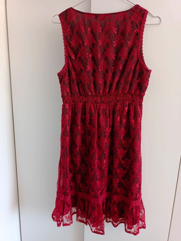 Robe rouge dentelle Vila M doublé noir, élastique à la taille. Décolleté, 100% polyester. Propre. Maison non fumeur. Voir photos. #m_djlaurita n'hésitez pas à cliquer sur le # pour consulter tous les vêtements de cette taille dans ma vitrine (en prenant soin de supprimer les filtres de recherche)