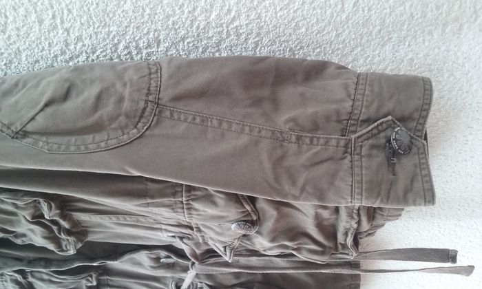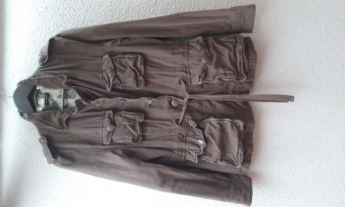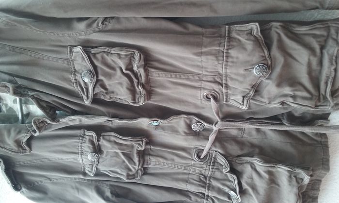 100% coton, T40/42, attention il manque un bouton en bas de la veste!