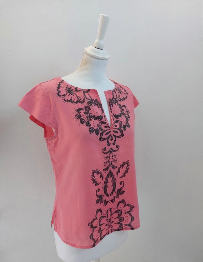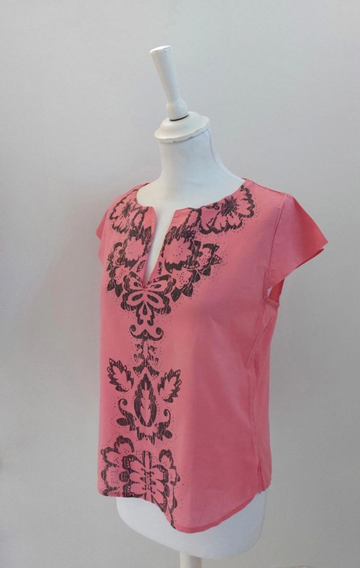 Blouse en coton léger rose imprimé manches courtes taille M - photo numéro 2