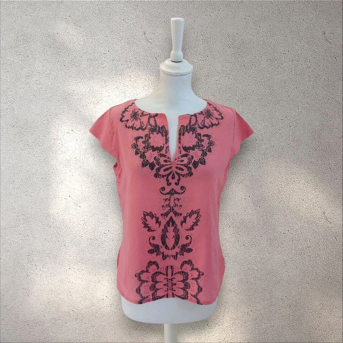 Blouse en coton léger rose imprimé manches courtes taille M - photo numéro 1