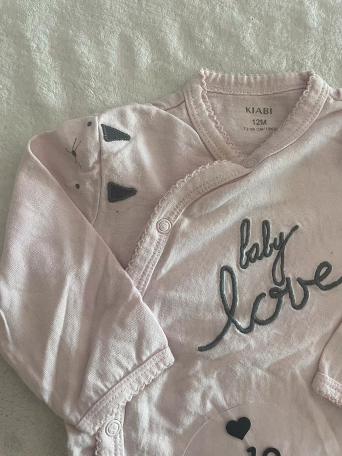 fille,pyjama, baby, love de couleur rose claire taille 12 mois. Très bon état #saadia_dlm_bébéfille_12mois