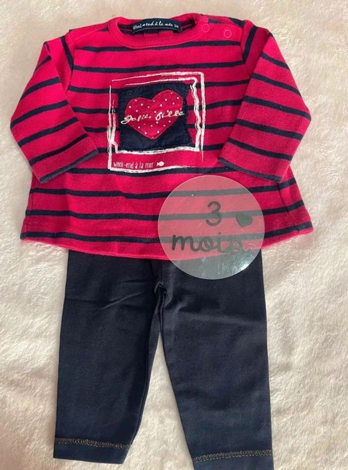 Haut et son legging bleu et rose foncé Ensuite week end à la mer Très bon état 3 mois #saadia_dlm_bébéfille_3mois
