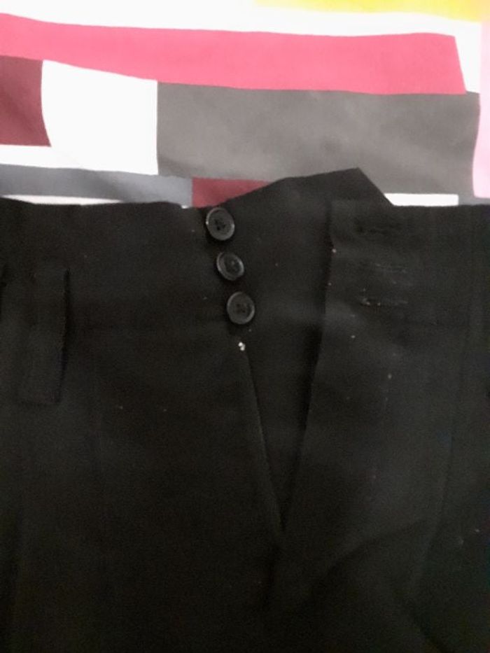 Pantalon noir style tailleur de la marque vero moda taille 36/size 8 Se ferme devant avec 3 boutons Passant pour passer une ceinture Vendu avec 2 boutons de rechange Article déjà porté
