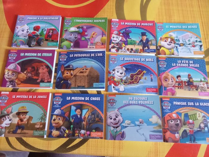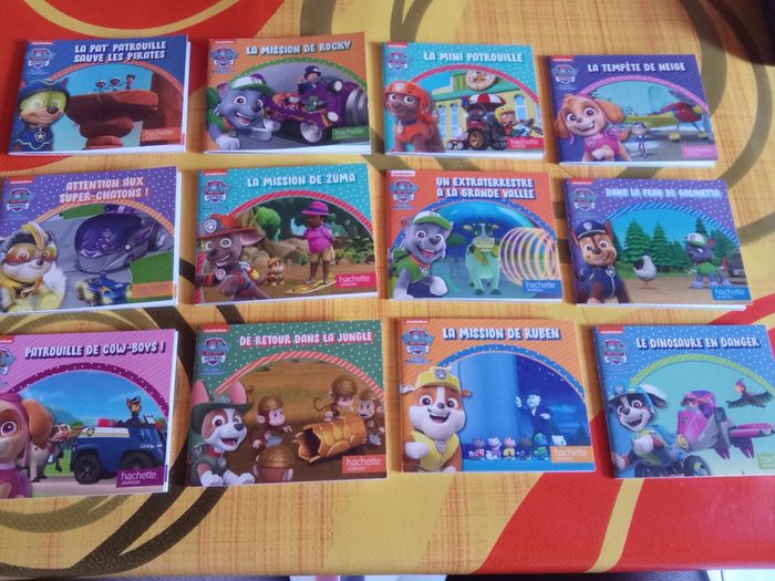 24 mini livres pat'patrouille Panique a la bibliothèque La pat'patrouille sauve les pirates Le monstres des neiges La mission de rocky Panique sur la glace La mini patrouille Au secours des ours polaire La tempête de neige L'anniversaire surprise Attention aux Super chaton La mission de chase La mission de Zuma Le mystère de la jungle Un extraterrestre a la grande vallée La fête de la grande vallée Dans la peau de galineta La mission de Marcus Patrouille de cowboy Le sauvetage de Noël De retour dans la jungle La patrouille de l'air La mission de ruben La mission de stella Le dinosaure en danger