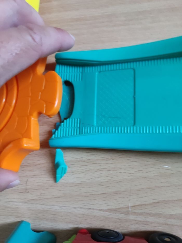 Mon circuit train interactif tut tut bolide VTech complet Circuit complet manque juste une bloc (boule) pour servir de marchandise Pour le pont bleu, le caoutchouc noir est cassé, et la manivelle pour monter où descendre ne fonctionne plus voir si possible de le réparer ?