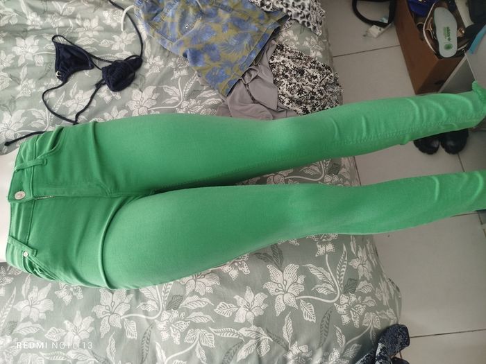 #kytieMfemme. Pantalon taille M de marque only vert neuf zippé avec une fermeture éclair poche avant et arrière mesure de la taille 36 cm tour de cuisse 50 cm hauteur 95 cm cheville effilé trop mignon ref O34