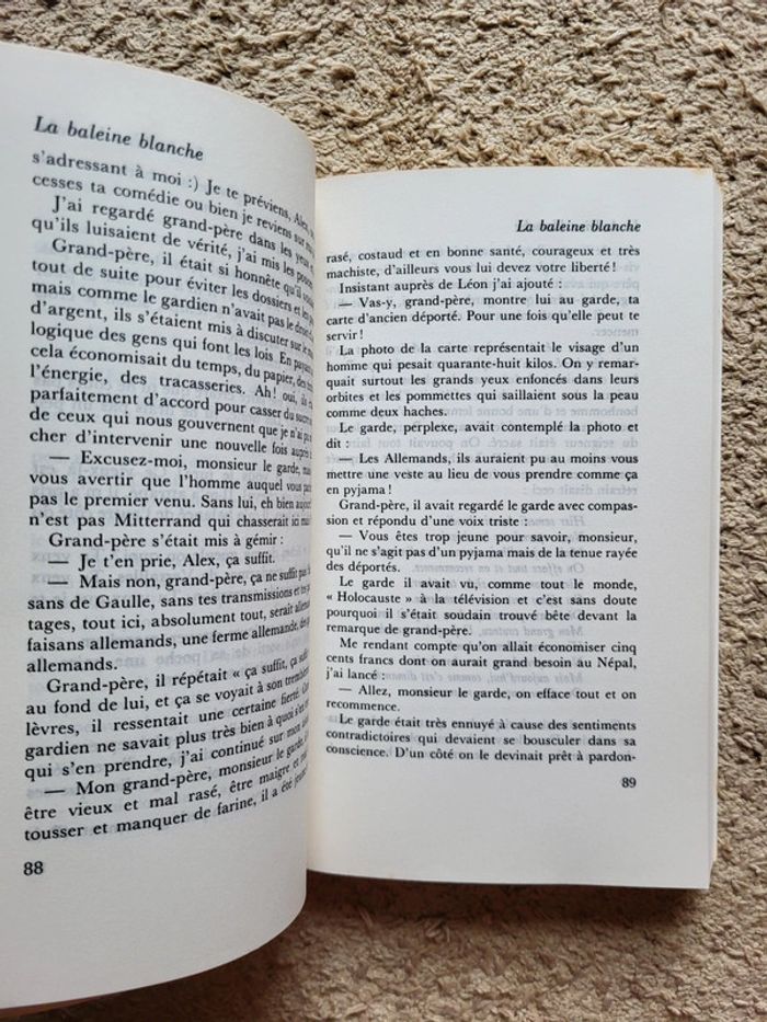 ⭐️ Nombreux livres dans mon dressing réductions sur les lots activées ✨️ 📚 Livre "La baleine blanche", un roman de Jacques Lanzmann 📕 Alex, 13 ans, est fasciné par son père Vince, parti pour un mois de marche au Népal… et disparu depuis trois ans. Déterminé à percer ce mystère, le garçon part à sa recherche, accompagné de son grand-père Léon, 82 ans, au caractère bien trempé et au cœur immense. Un récit émouvant d’aventure initiatique, père-fil ou lien intergénérationnel, avec pour toile de fond les hauts sommets de l’Himalaya. On rit, on pleure, avec pudeur et tendresse – un voyage riche en émotions humaines. 📖 Couverture avec jaquette et pages en bon état, sans usure, mais avec quelques tâches jaunes 📍 Une histoire touchante entre un adolescent et son grand-père
