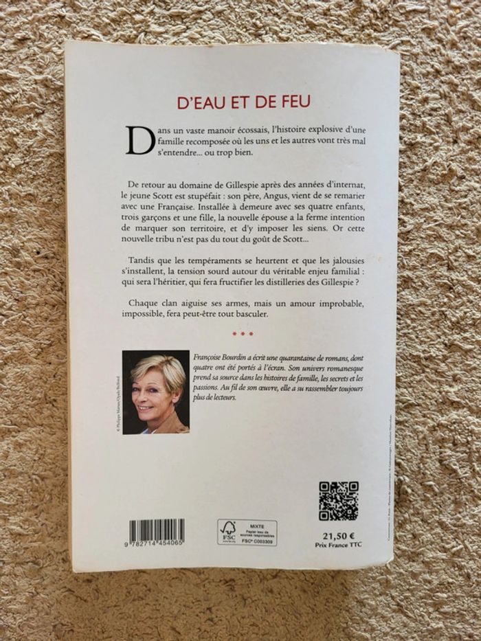 ⭐️ Nombreux livres dans mon dressing réductions sur les lots activées ✨️ 📚 Livre "D'eau et de feu" de Françoise Bourdin 📕 Scott revient au domaine familial en Écosse et découvre que son père, Angus, s'est remarié avec Amélie, une Française, mère de quatre enfants. Les tensions montent entre les membres de cette famille recomposée, notamment autour de l'héritage du domaine et de la distillerie. Malgré les rivalités, une passion interdite pourrait tout bouleverser. 📖 Bon état, sans usure importante 📍