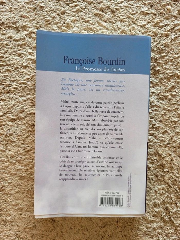 ⭐️ Nombreux livres dans mon dressing réductions sur les lots activées ✨️ 📚 Livre La promesse de l'océan de Françoise Bourdin 📕 Mahé, trentenaire et patronne pêcheuse à Erquy en Bretagne, a renoncé à l'amour après la disparition en mer de son fiancé et une douloureuse trahison. Elle se consacre entièrement à son travail et à son équipe de marins. Son amie Armelle l'encourage à rouvrir son cœur, mais Mahé reste fermée. Cependant, une rencontre inattendue avec Alan, un homme aussi solitaire qu'elle, ravive des sentiments enfouis. Leurs passés respectifs ressurgissent, mettant leur fragile équilibre à l'épreuve. Entre amour, blessures et secrets, Mahé parviendra-t-elle à se reconstruire ? 📖 Couverture avec jaquette Très bon état, aucune usure mais quelques légères tâches jaunes sur la page de garde