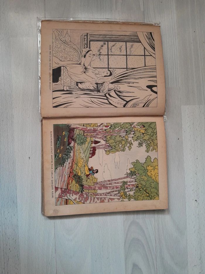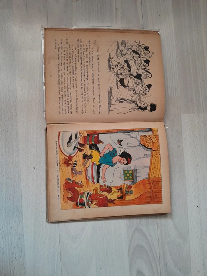 B e vu son âge, complet 1938, avec illustrations en couleurs et noir et blanc #ontheralivradulte #ontheralivrenfant #livredisneyvintage #livredisneyblancheneige #livredisneyblancheneigeetlesseptnains #livredisneyancien