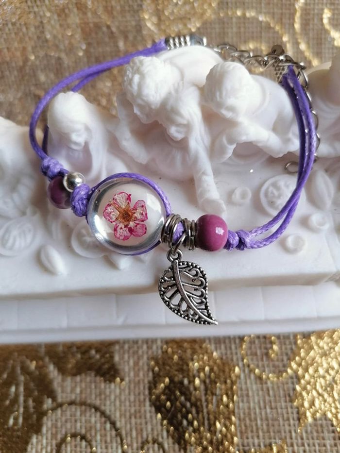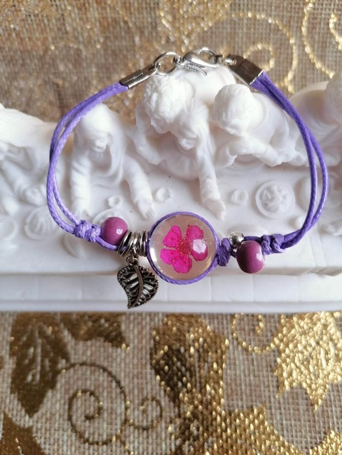 bracelet en résine avec fleur violette - photo numéro 2
