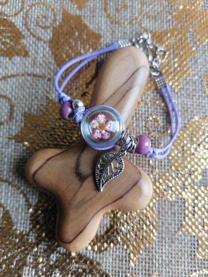 bracelet en résine avec fleur violette