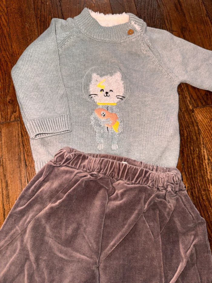 Pull sergent major et bas velour Bout’chou 9 mois - photo numéro 1