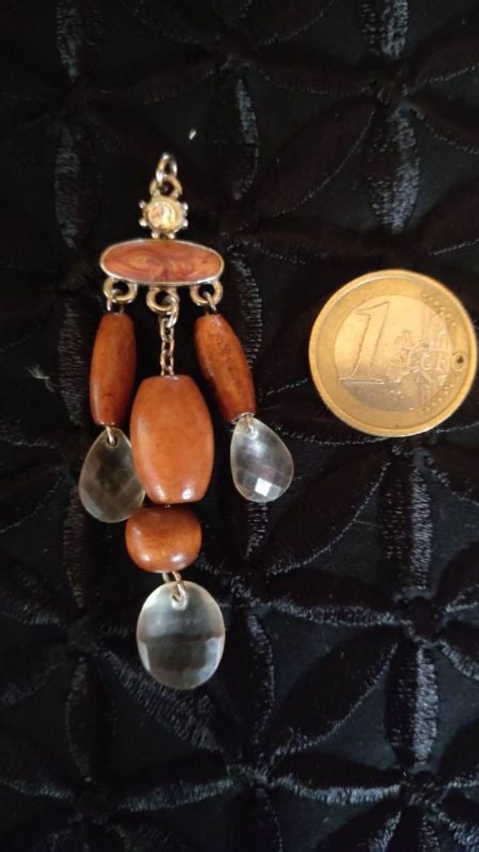 Pendentif métal argenté bois strass plastique vintage