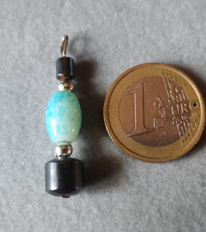 Pendentif perle verre turquoise et noir vintage