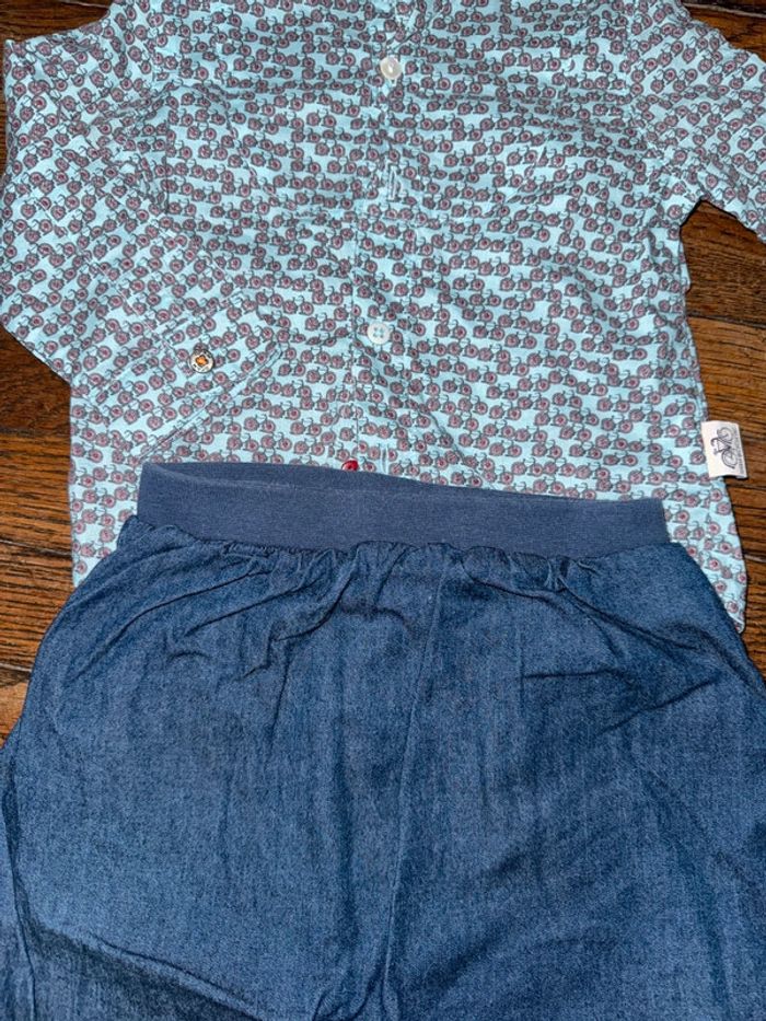 Chemise dpam et bas denim Bout’chou  12 mois - photo numéro 2