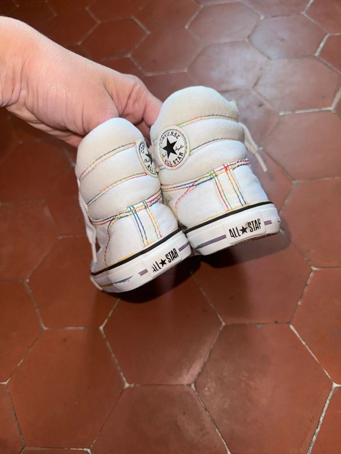Baskets toile converse Taille 24 N’hésitez pas à faire des lots (en bas d’une annonce), j’ai beaucoup de choses dans mon dressing (fille garçon femme homme … ect toutes tailles) ☺️ L’astuce pour voir d’autres articles de la même catégorie ou de la même taille c’est que quand vous êtes sur un objet vous allez vers le bas et la Vinted va vous proposer des choses de mon dressing similaire à l’article que vous regardiez ☺️