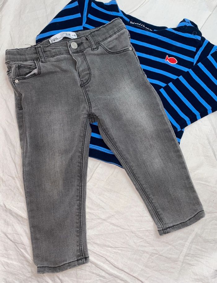 ensemble jeans Zara + marinière Weekend à la mer 18 mois - photo numéro 1