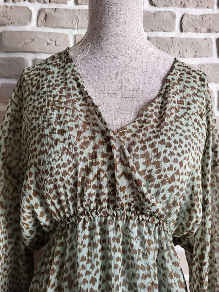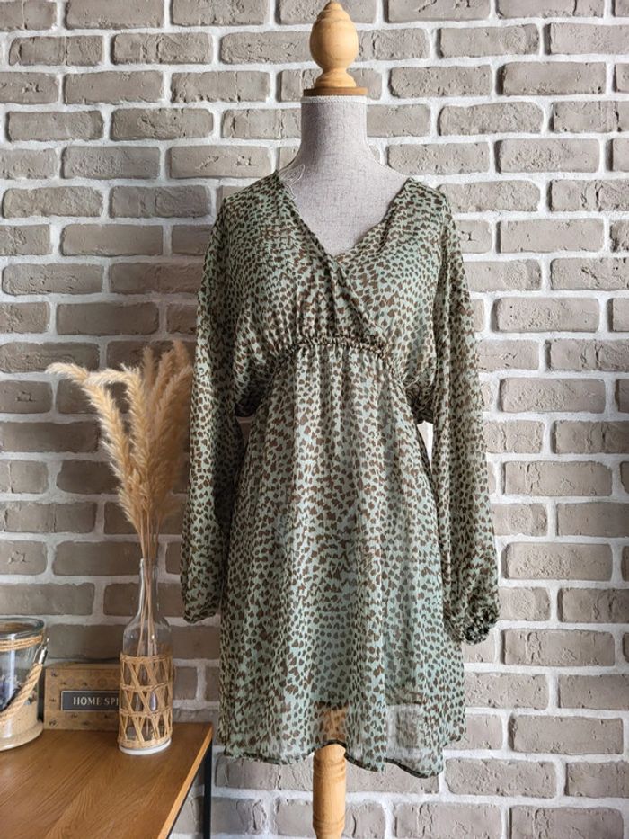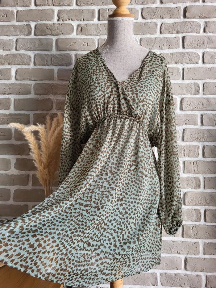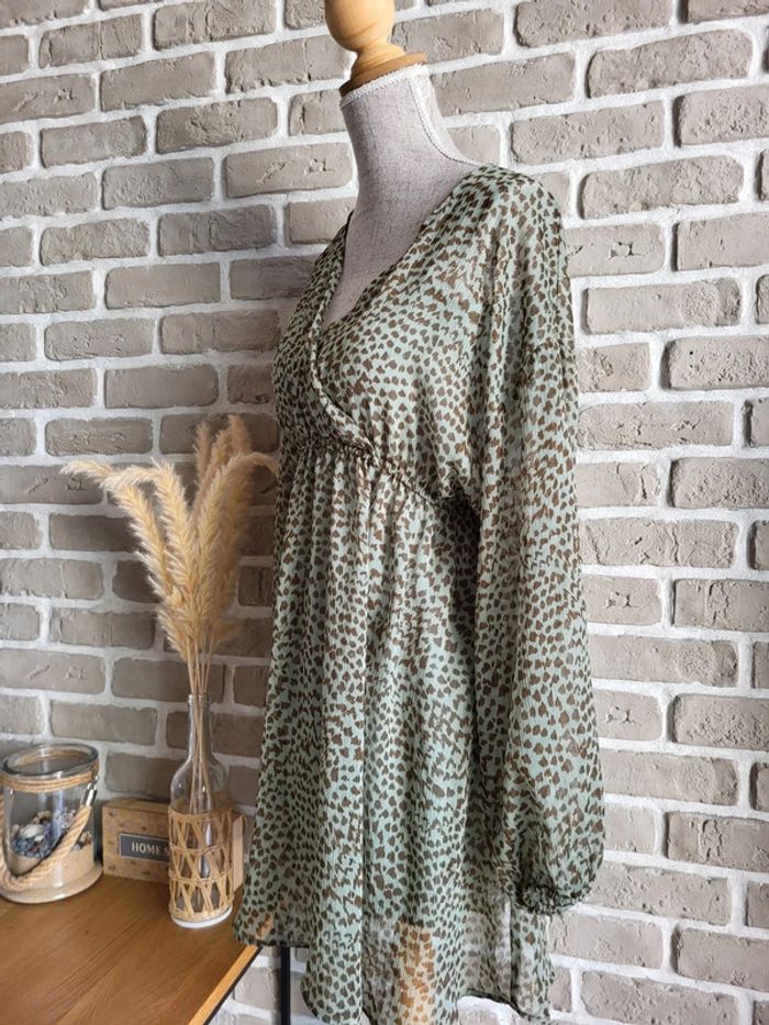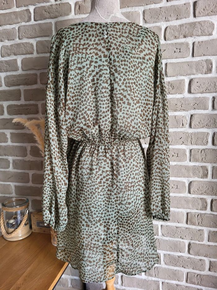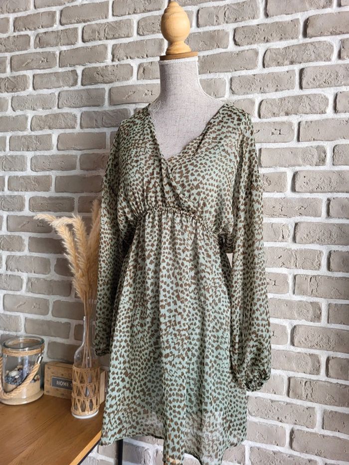💝 Bénéficiez d'une réduction en créant lot dans mon dressing 🛍️ 🌸 Jolie robe Mango comme neuve, très peu portée 🎀 Voile léger et vaporeux avec un imprimé animal kaki sur fond vert tendre Doublé par une sous robe à fines bretelles 🪷 Coupe fluide avec taille élastiquée Décolleté croisé cache cœur 🍥 Taille S 36 Longueur : 83 cm 🩷 Parfaite pour un style bohème chic, à associer avec des bottines et un long gilet en maille beige