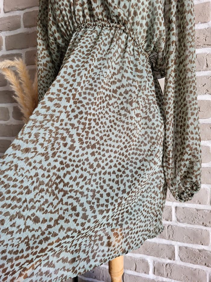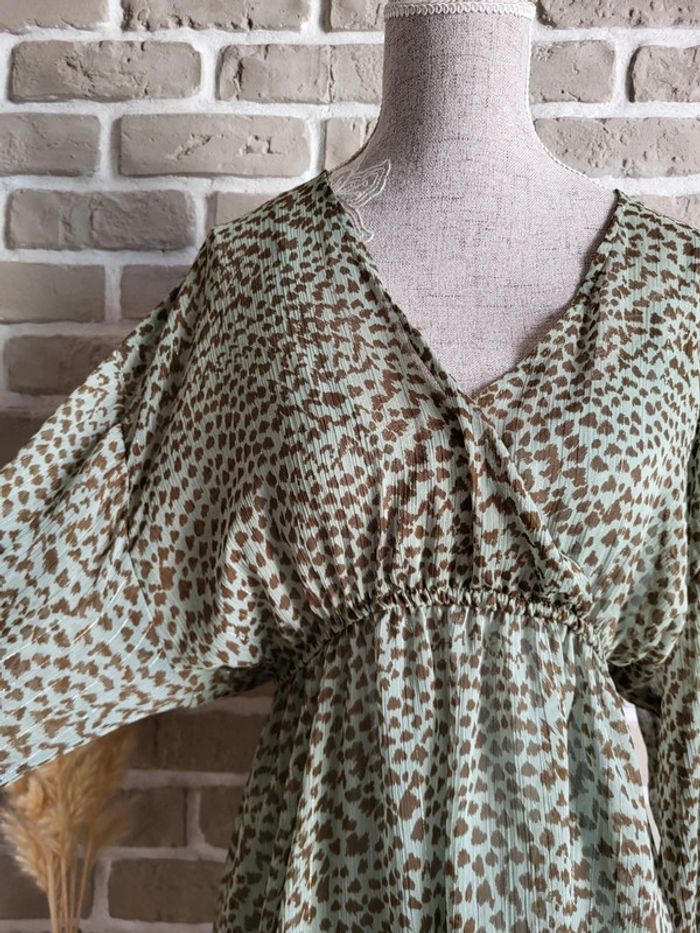 Robe fluide Mango imprimé animal vert/kaki – Style bohème chic