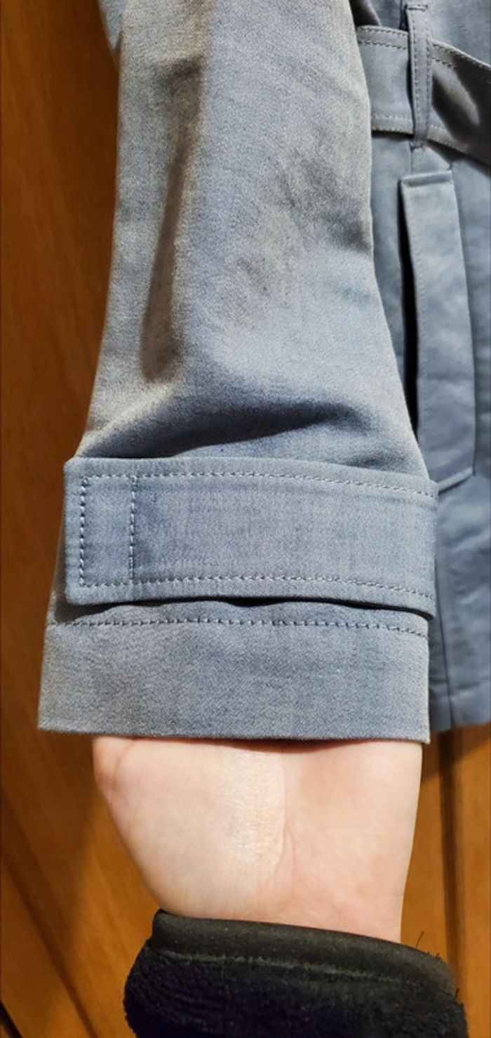 Trench gris-bleu, avec ceinture, poches latérales, bouton intérieur et un extérieur, intérieur noir IKKS / T-38 - 100% Coton #vestesetblousonsboulie2318 #boulie2318taille38