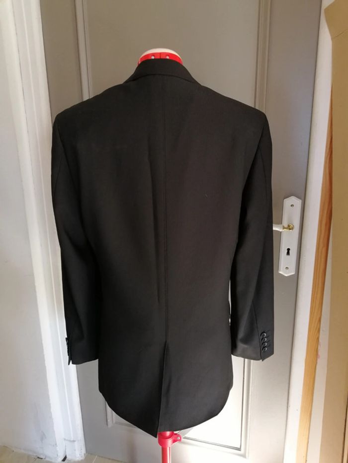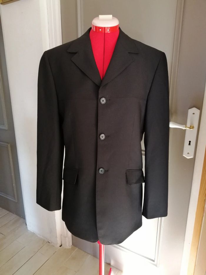 Jolie veste de costume Noire Marque Brice Excellente qualité Plusieurs poches, extérieure et intérieure Tissu fines rayures Taille 46 homme (correspond taille EU S, mais taille plutôt comme un grand S petit M)