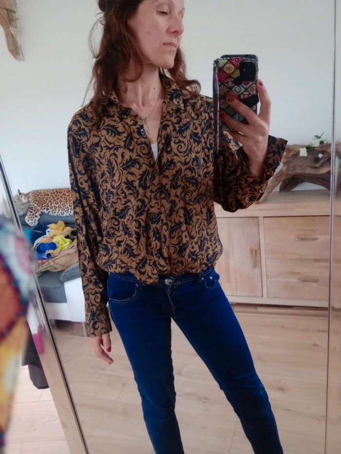 Chemise femme 42 noire et marron c83 - photo numéro 3