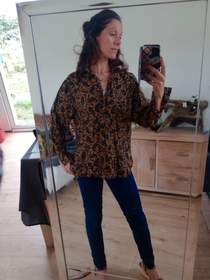 Chemise femme 42 noire et marron c83 - photo numéro 1