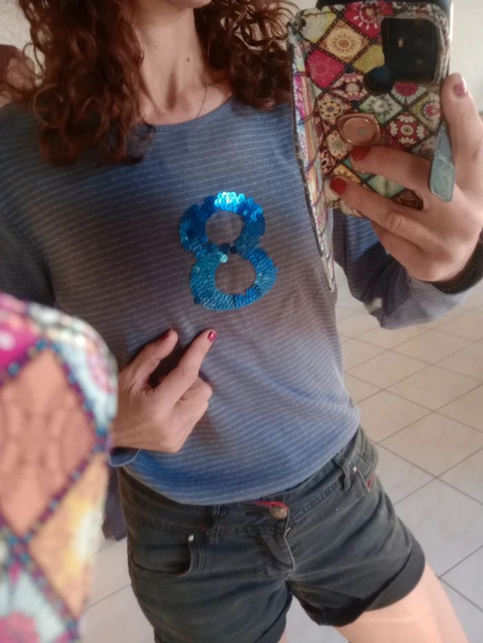 Col rond Présence d'un huit en sequins Épaule 46 cm longueur 62 cm #carineleray_femme_44