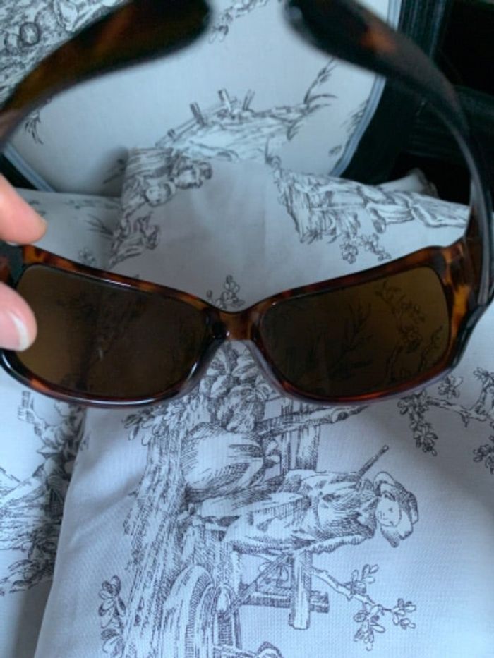 Lunettes bien couvrante couleur écaille de tortue . Elle ont été portée et présente des rayures qui peuvent partir avec un traitement.💊 Voir un opticien, seul lui pourras vous conseiller.